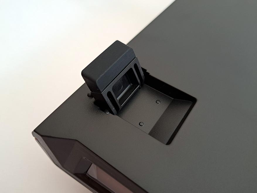 Корпус в форм-факторе «скелетон» имеет трапециевидный профиль. На торцах расположены светодиодные RGB панели.