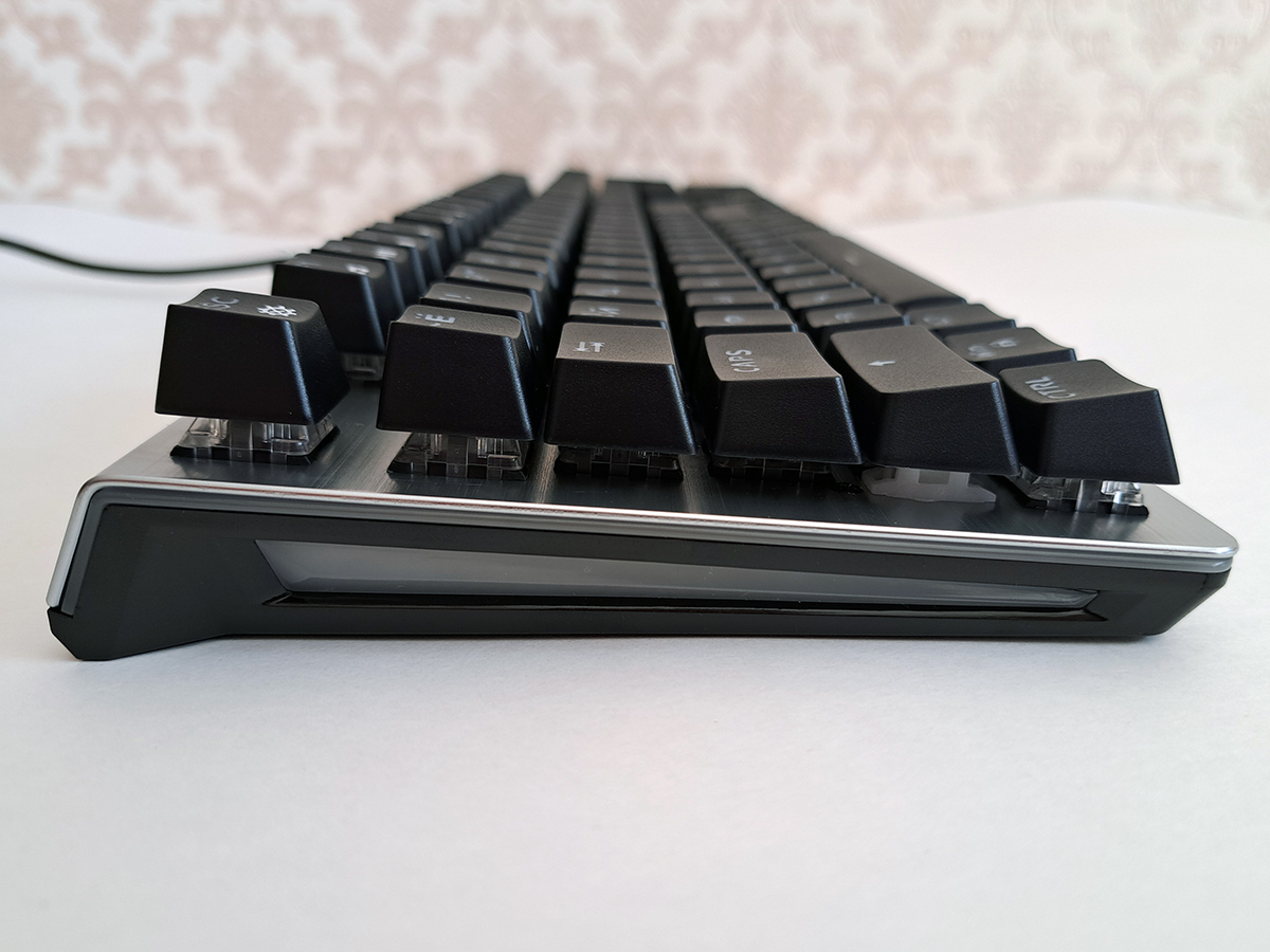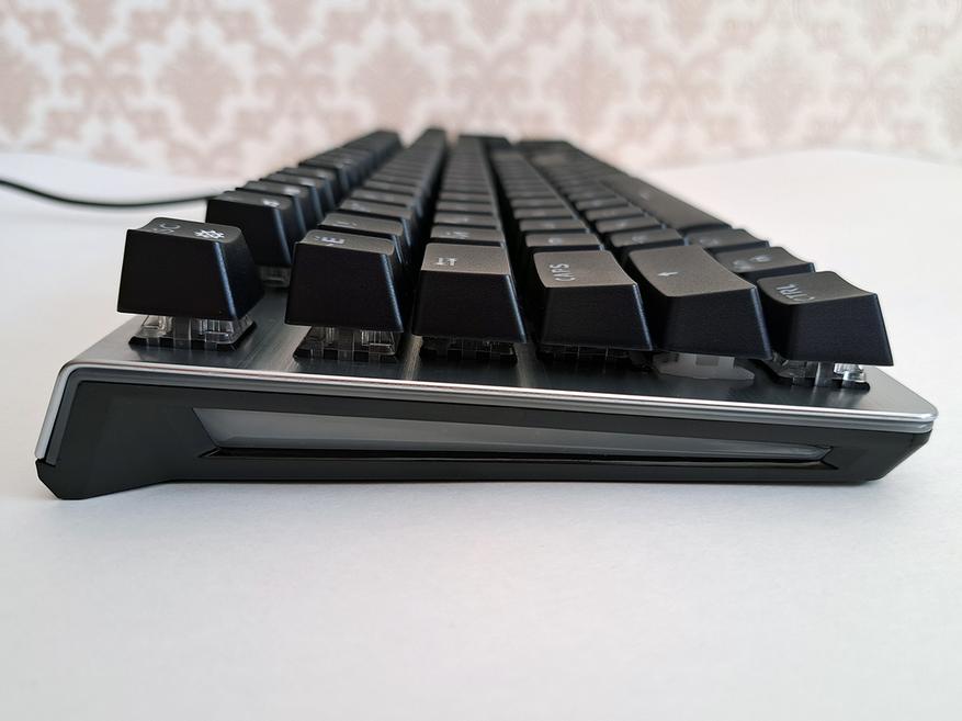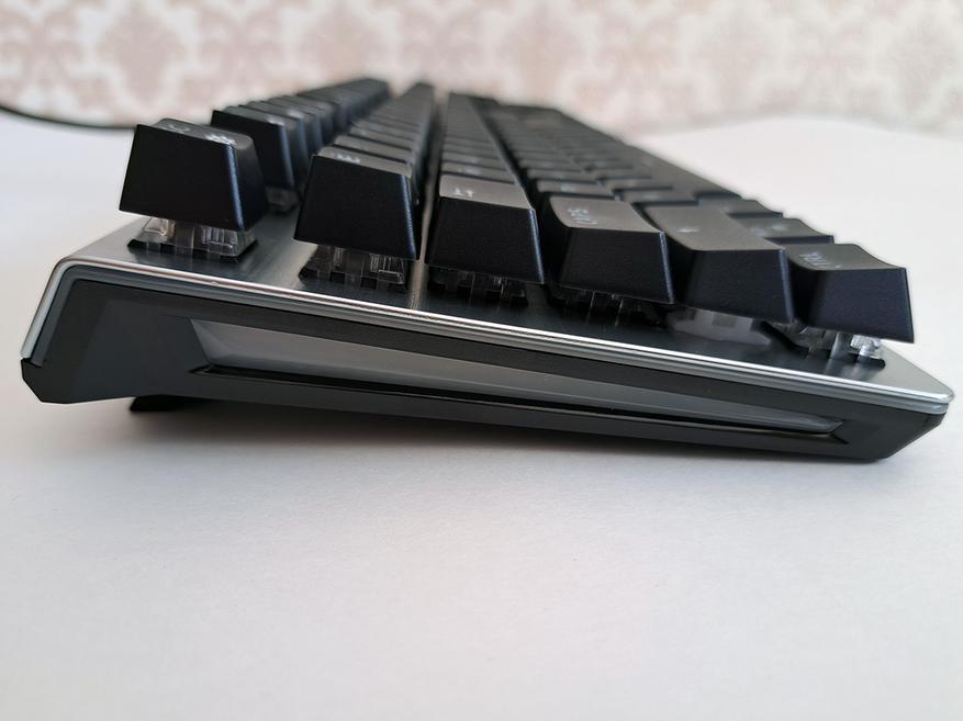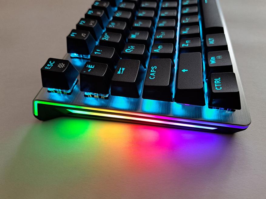 Световые панели на торцах клавиатуры демонстрируют все богатство RGB подсветки, что диссонирует с мрачноватой стилисткой подсветки клавиш. Отключить свечение панелей нельзя.