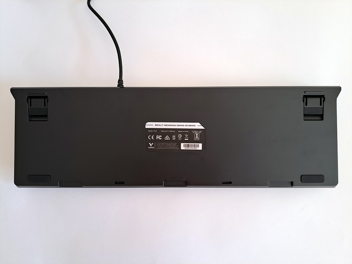Нижняя крышка у клавиатуры пластиковая. Устройство обладает четырьмя резиновыми ножками, но также заметную долю в устойчивость вносит немалый вес клавиатуры.