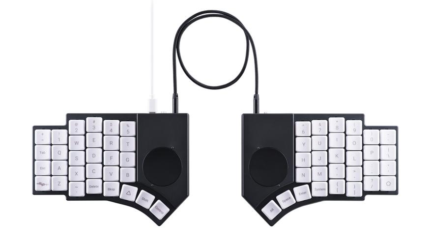 Конструкция включает в себя два круглых трекпада диаметром 40 миллиметров, расположенных над блоком клавиш для большого пальца. Каждая половина клавиатуры оснащена аккумулятором емкостью 1000 мАч. Производитель заявляет о 336 часах непрерывной работы при отключенной RGB-подсветке и неактивном режиме сна. Беспроводное соединение осуществляется через Bluetooth 5.0 с возможностью подключения к четырем устройствам одновременно и к одному через USB.