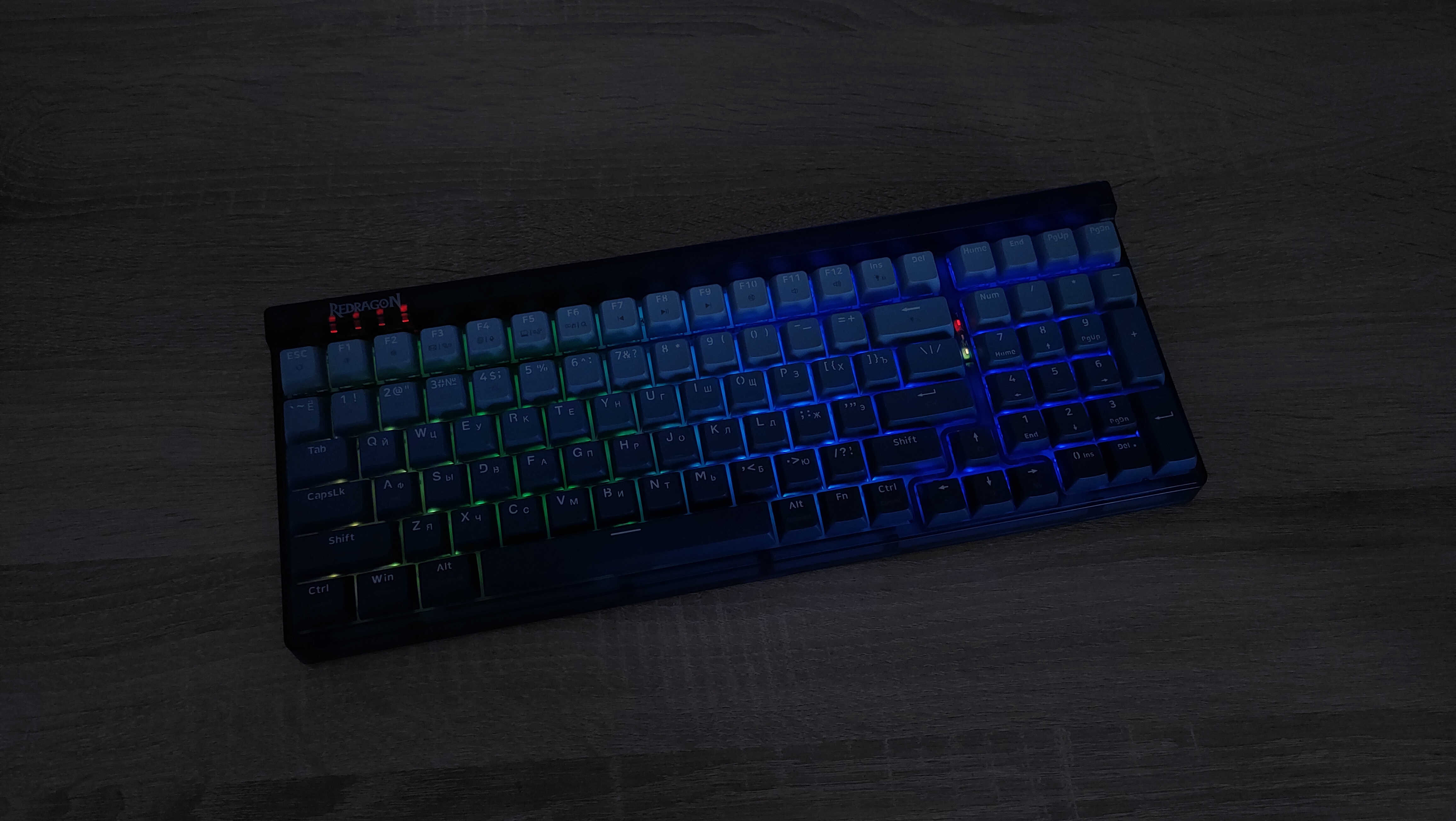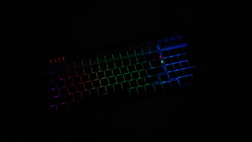 Подсветка в клавиатуре есть, но благодаря (или по вине), колпачкам из PBT пластика, она исключительно декоративная. Я подобную подсветку называю «слепой».