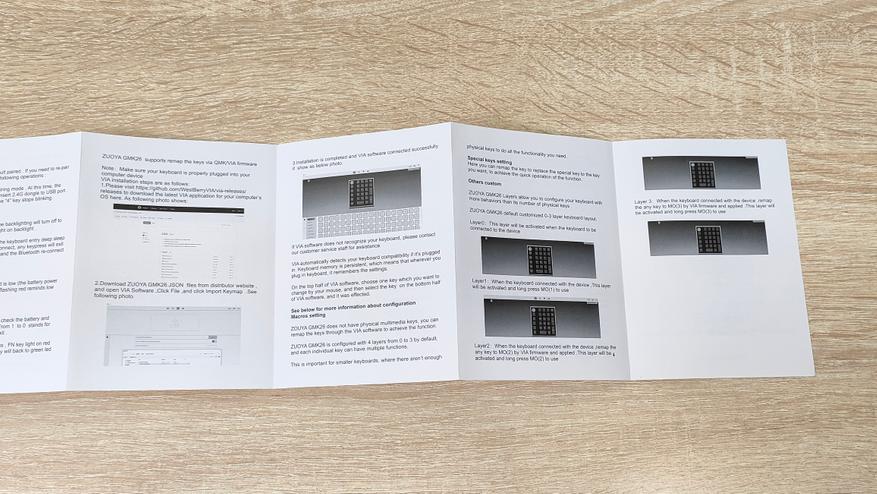 Руководство пользователя выполнено в виде гармошки и переведено на два языка, китайский и английский. Советую пролистать, особенно посмотреть на первую страницу, где перечислены комбинации клавиш.