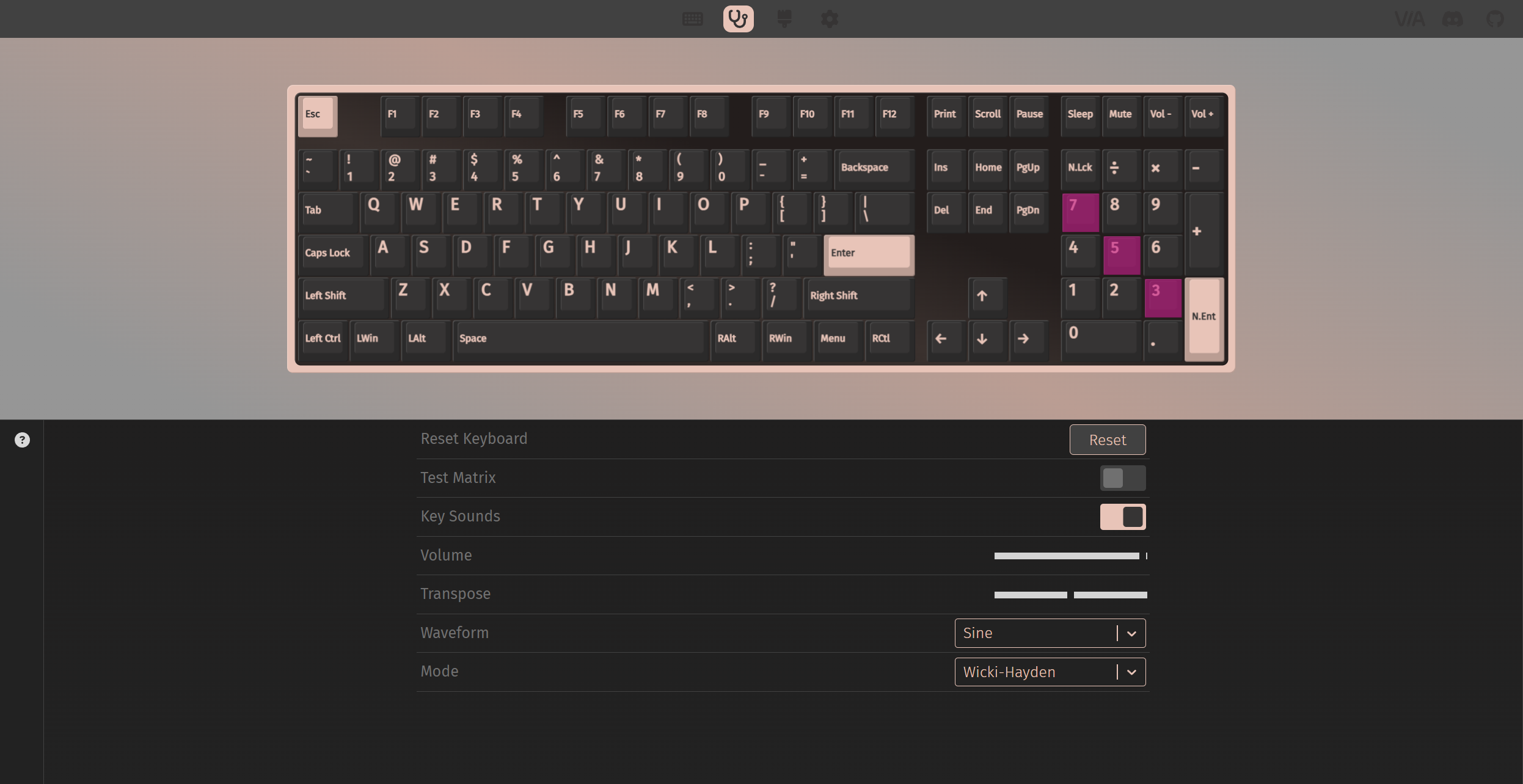 Для настройки используется веб-версия ПО, которое заработало у меня при подключении по проводу. Встречал отзывы, что не могут подобрать иногда json файл для работы с клавиатурой, поэтому выложу его на диск, это именно тот который заработал у меня.