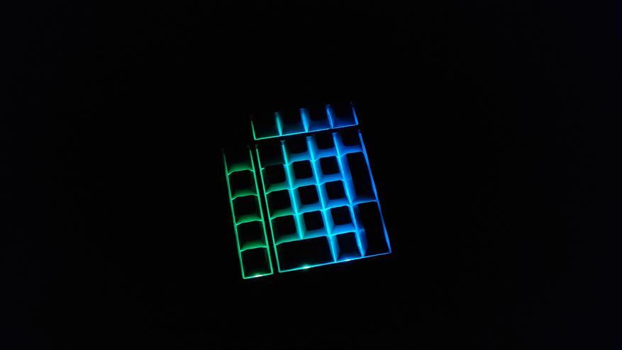 Естественно она слепая, так как используется PBT колпачки и оба слоя здесь непрозрачные.