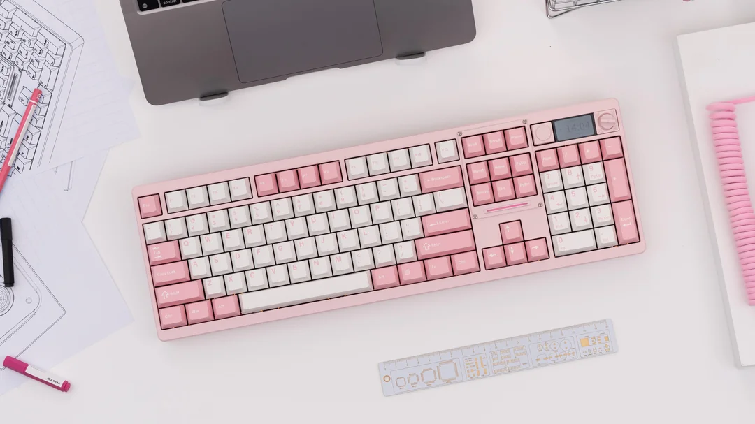 В конструкцию интегрирован небольшой экран, который может отображать системную информацию, время, пользовательские GIF-анимации или функционировать в режиме калькулятора. Управление экраном и другими параметрами осуществляется через веб-драйвер. Дополнительно, навигационный блок над стрелками можно заменить на специальный лоток для хранения мелких предметов. Прошивка клавиатуры совместима с открытым программным обеспечением VIA для переназначения клавиш. Клавиатура будет доступна в нескольких цветовых вариантах, включая белый, серый, черный, розовый, желтый и синий.