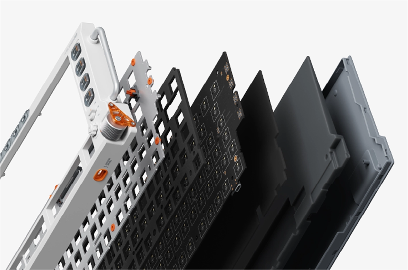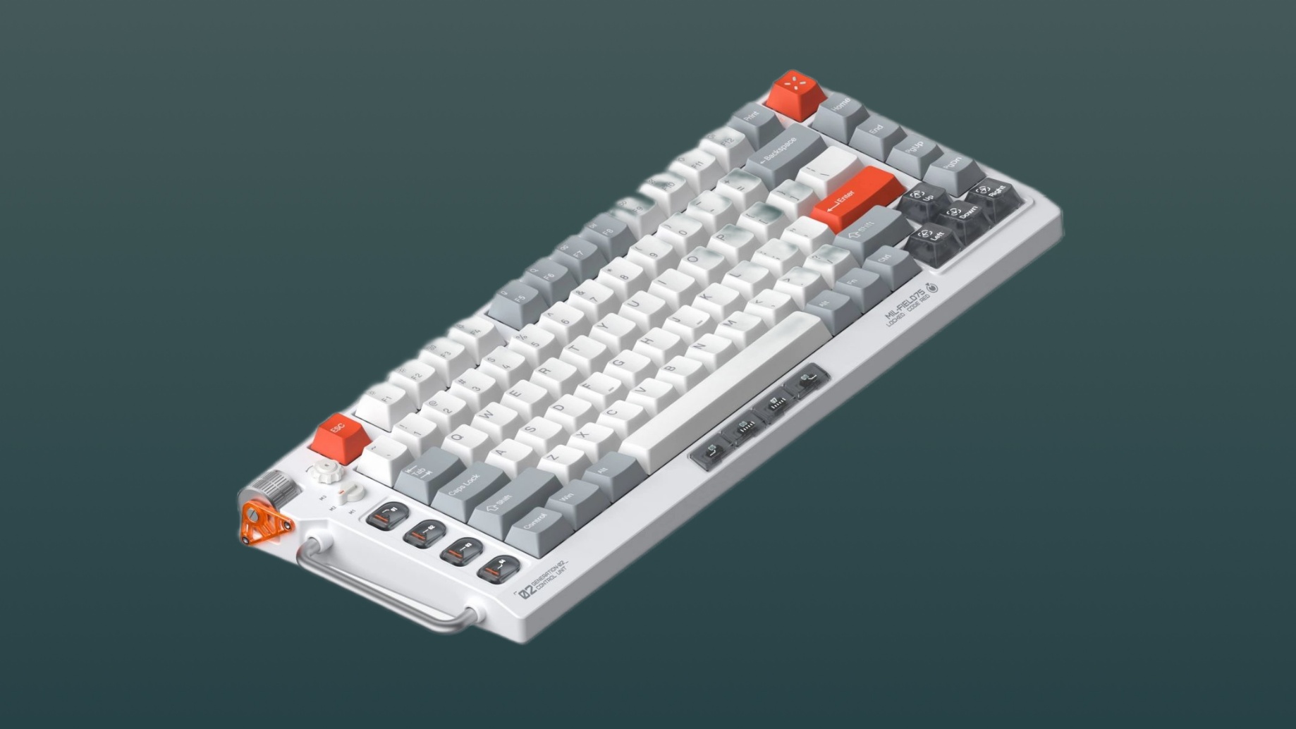 Field75 HE V2 выполнена в 75% ANSI-раскладке на 83 клавиши. Конструкция дополнена 8 программируемыми макро-кнопками, металлическим энкодером громкости и физическим переключателем режимов. Корпус из ABS-пластика имеет высоту 21,0 мм в передней части и 40,4 мм в задней. Внутренняя архитектура базируется на Top Mount креплении с алюминиевой позиционирующей пластиной и пятислойным сэндвичем из шумопоглощающих материалов.