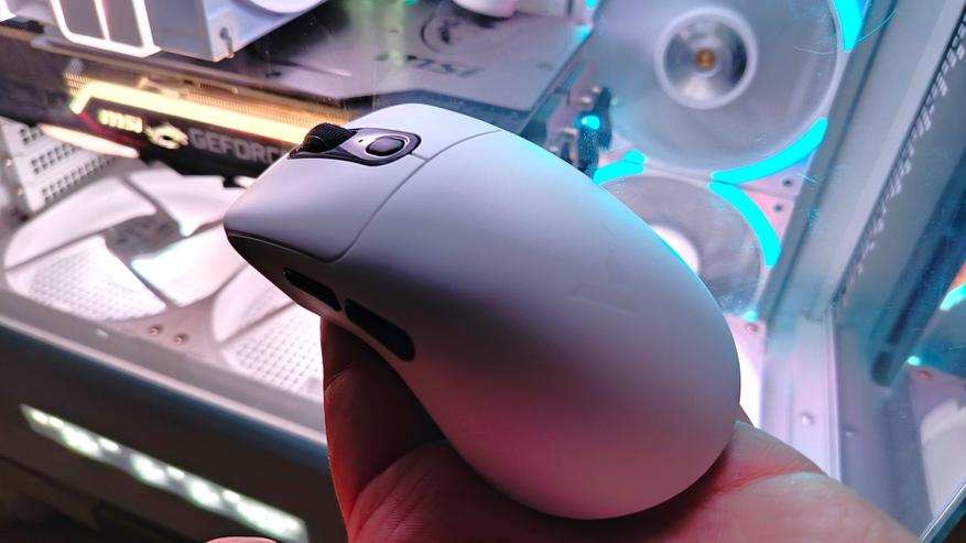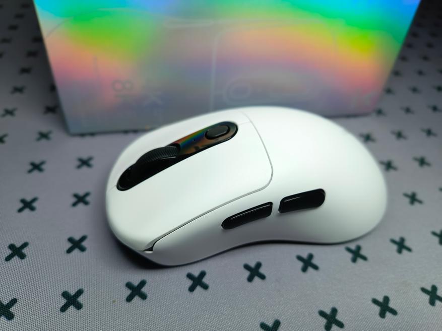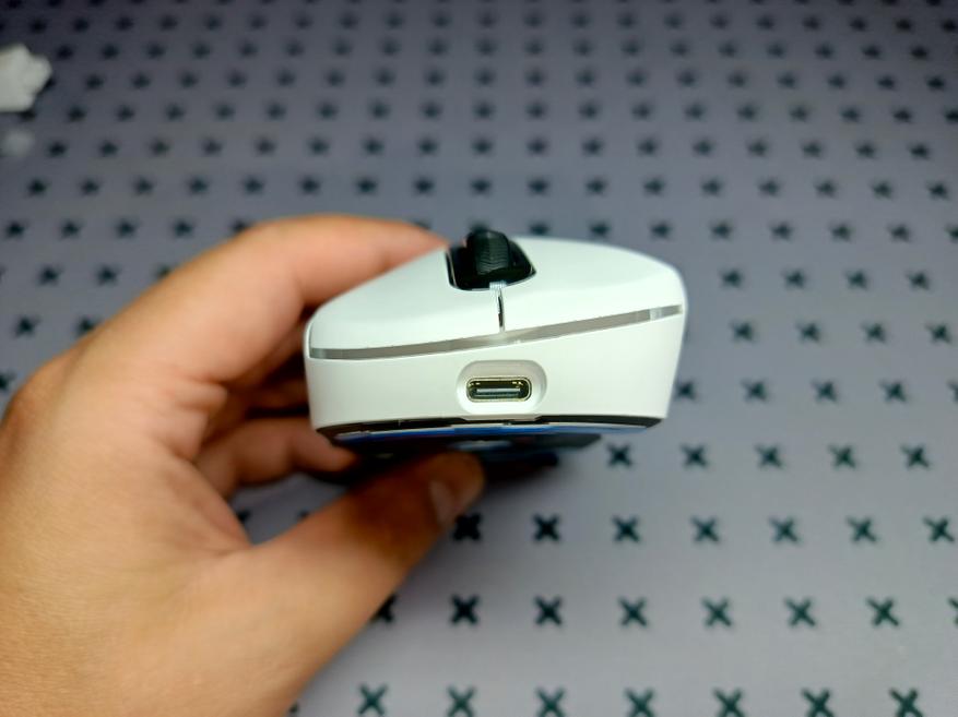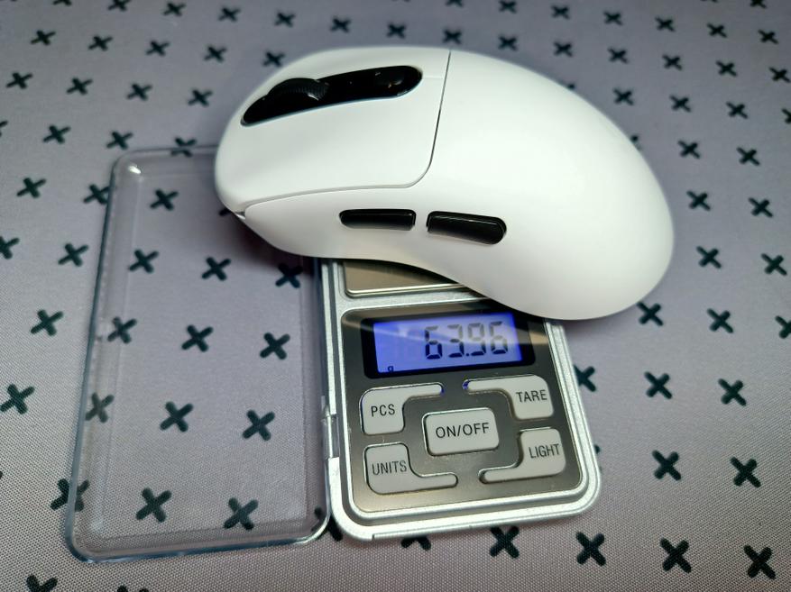 С торца расположился USB-C разъем, который служит для проводного подключения, а также для зарядки. Мышка весит 64 грамма, и её можно назвать при её габаритах легкой моделью. Хотя вес мышки и хват — это очень сугубо личные предпочтения, поэтому перед покупкой, как всегда, лучше подержать мышку в руках.
