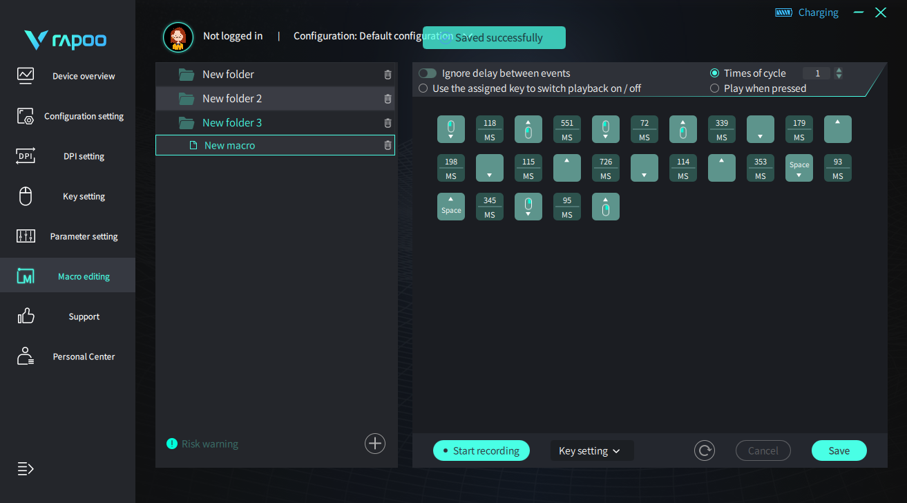 Макросы создаются по стандартной схеме. Создаете новый шаблон и нажимаете запись. После нажимаете нужные вам кнопки в нужном порядке, причем можно записать кнопки как мышки, так и клавиатуры. После останавливаем запись и при желании выставляете задержку между нажатиями кнопок.