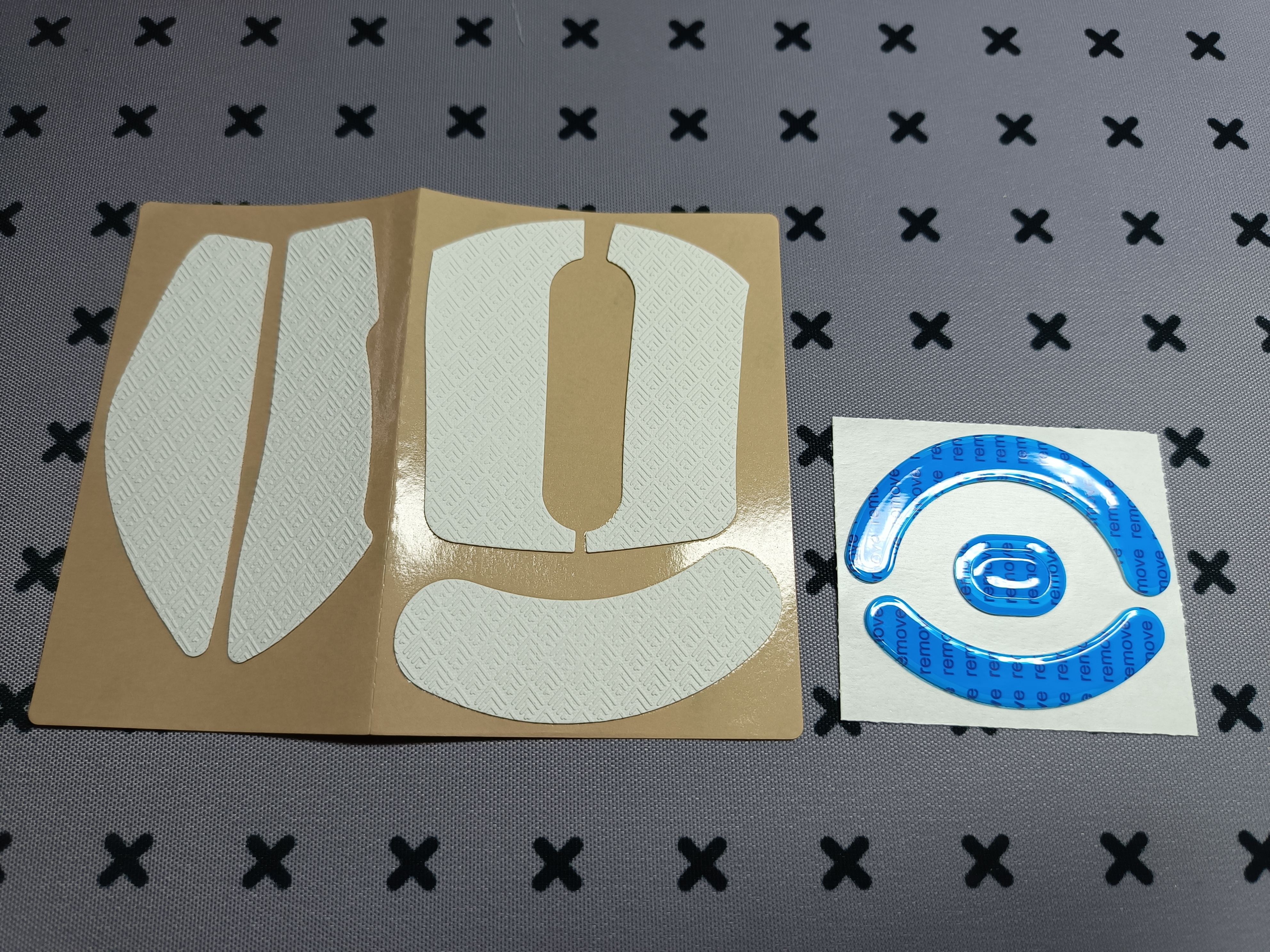 - Комплект белых противоскользящих накладок на корпус, как их еще называют, «грипсы»