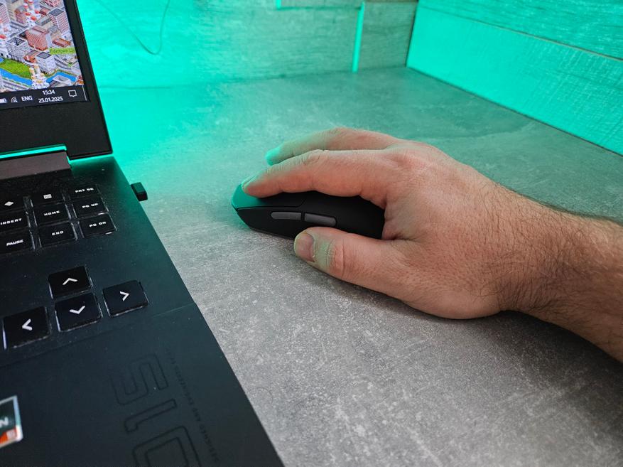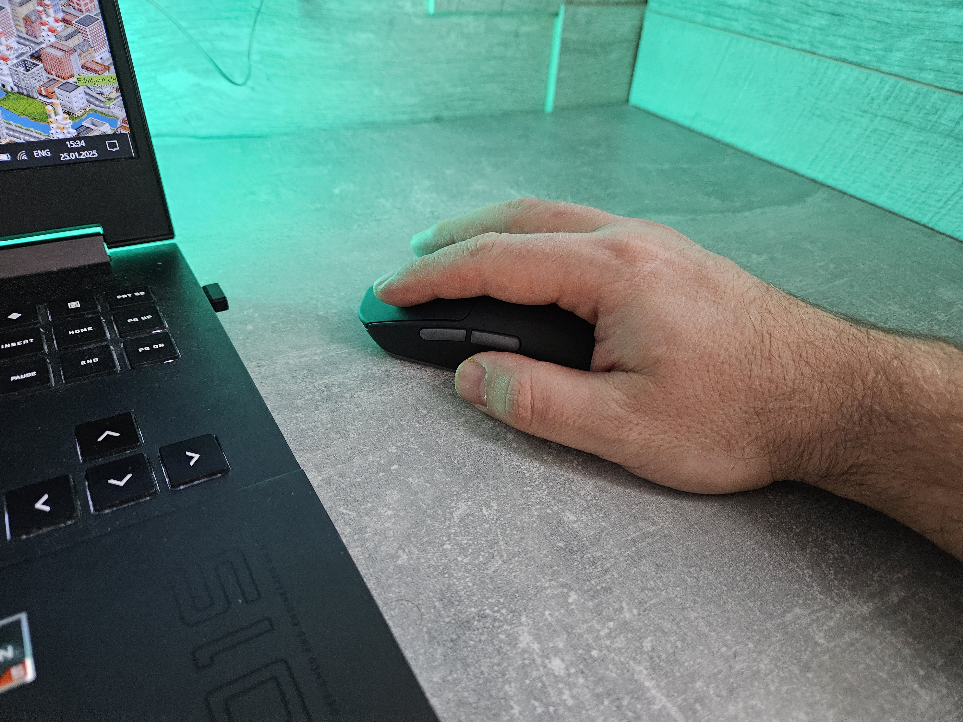 Мышь IO Aurora оказалась на удивление удобной в использовании. Маленький вес сделал её практически невесомой, что даже после затяжных игровых сессий нет напряжения или усталости в руке. Мышь легко и плавно скользит по любым поверхностям. Тесты на ковриках разного типа и без них показали одинаково отличный результат. Форма и баланс мыши создают ощущение уверенного контроля и приятного «слияния» с рукой. Очень порадовало продуманное расположение дополнительных кнопок — случайные нажатия исключены. В играх же мышь раскрывается полностью, обеспечивая высокую точность и позволяя гибко настроить чувствительность под любой стиль игры.