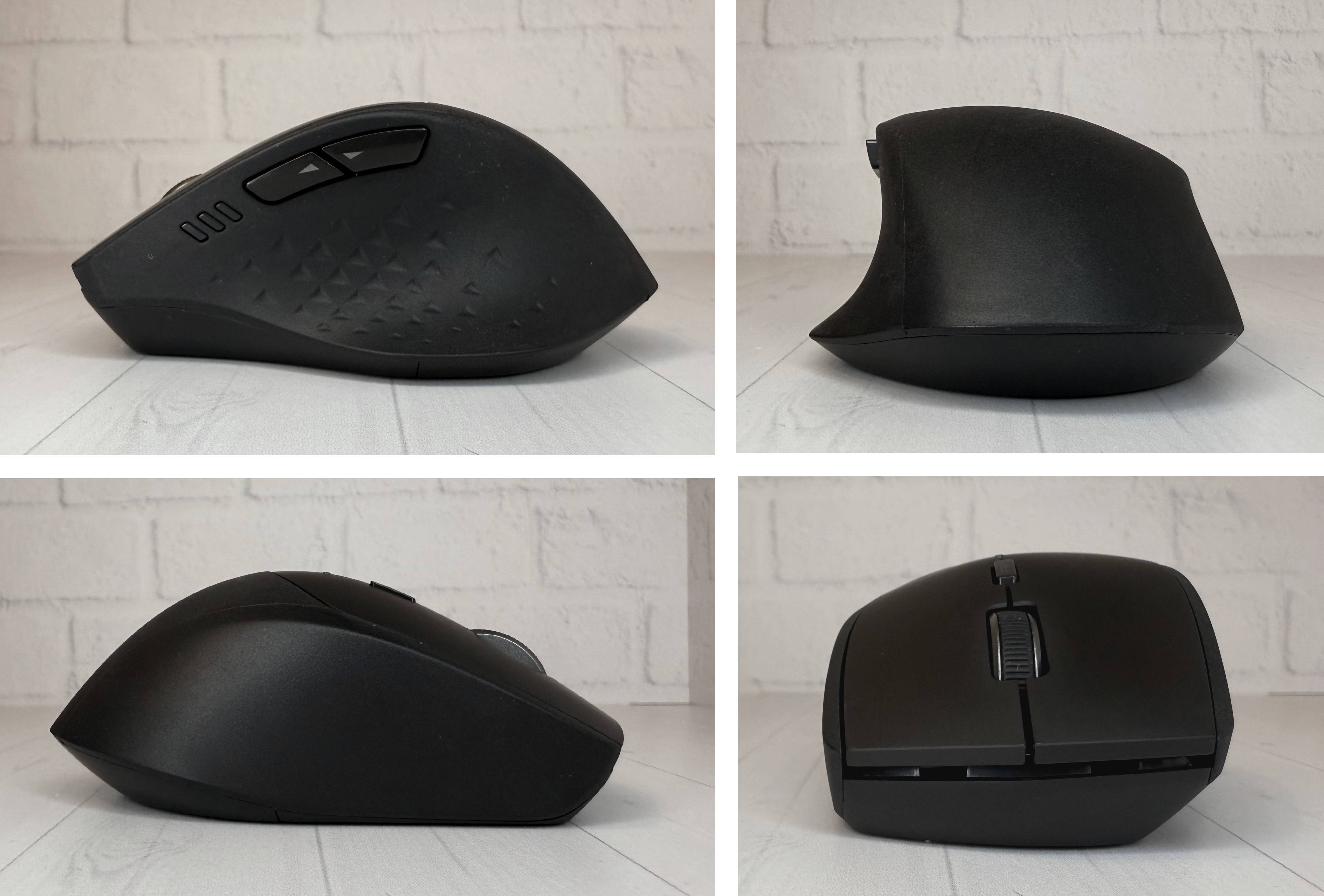 ЛКМ и ПКМ выполнены из слегка шершавого пластика, приятного на ощупь. Остальная верхняя часть корпуса имеет матовое прорезиненное покрытие. Смотрится и ощущается здорово.
