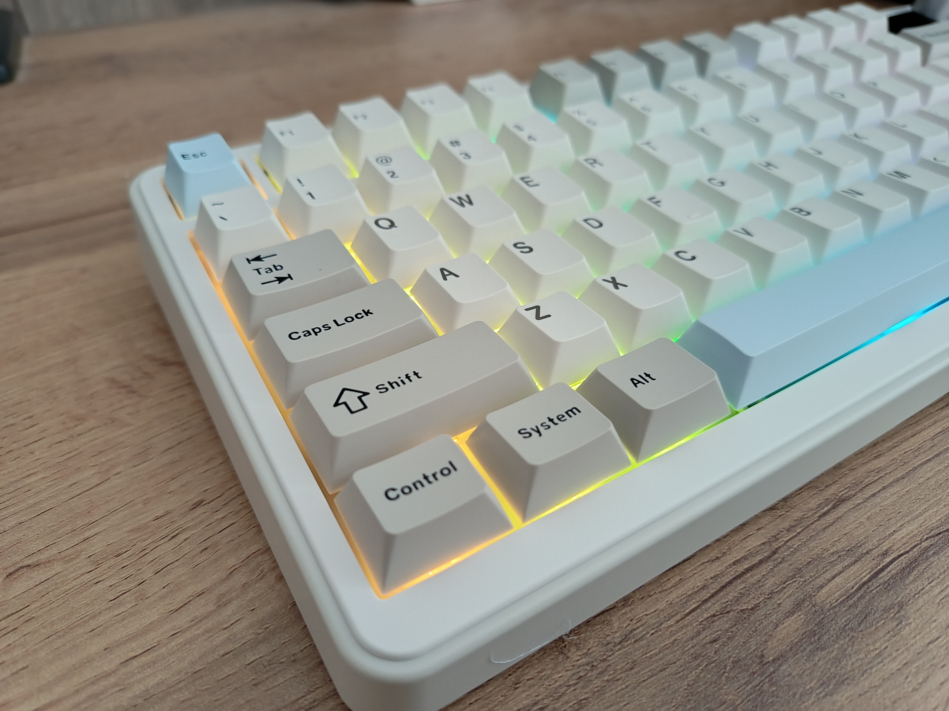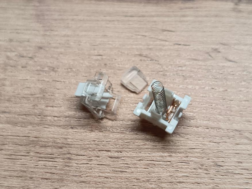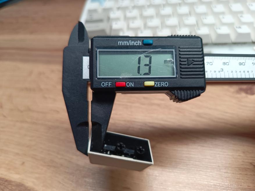Кейкапы изготовлены по технологии двойного литья, что обеспечивает долговечность и чёткость символов. Толщина боковых стенок составляет 1,3 мм, а верхней и нижней поверхности — 1,6 мм, что является средним, но весьма хорошим показателем среди клавиатур этого класса.