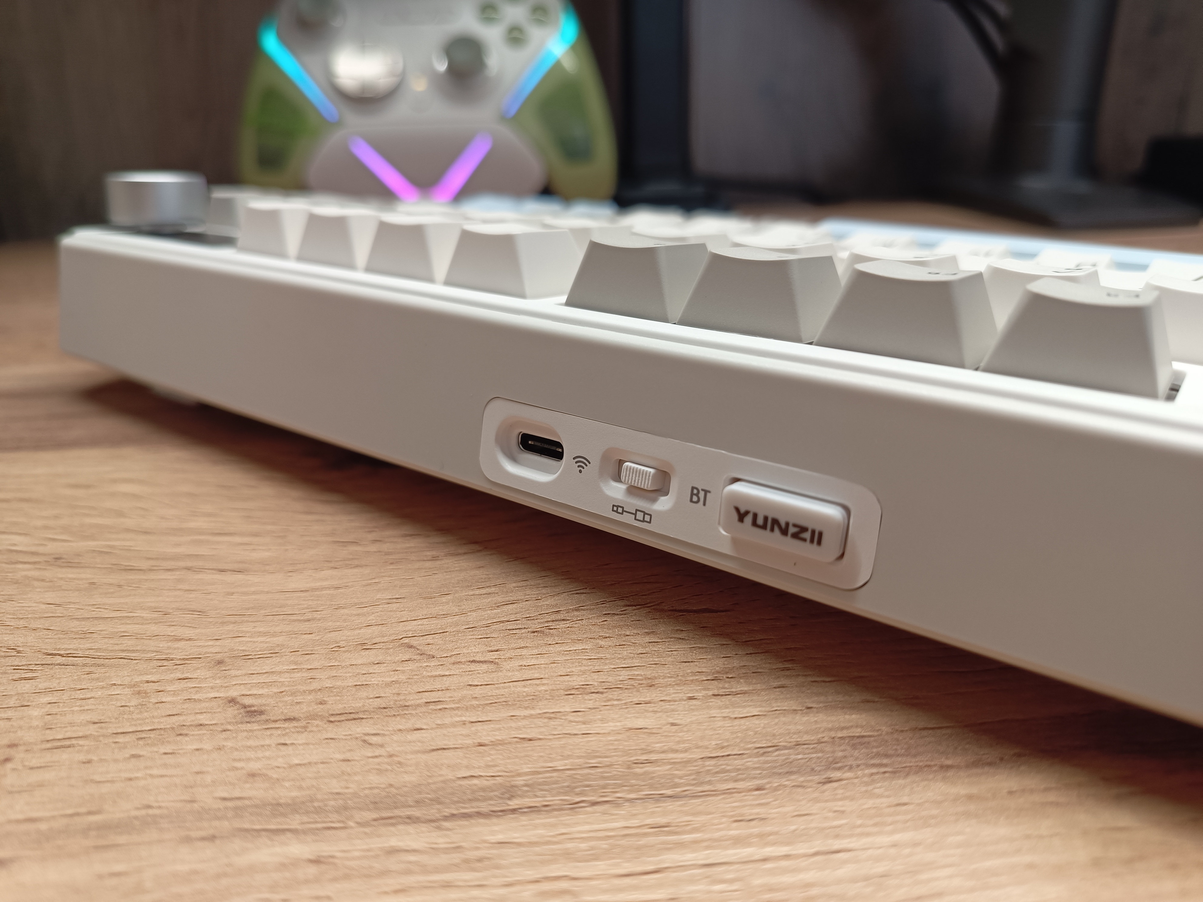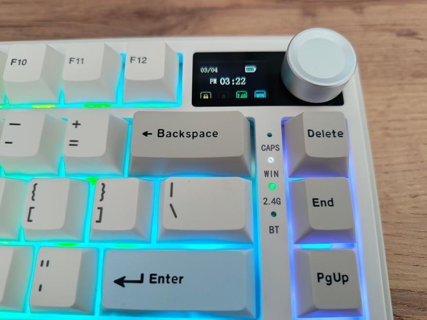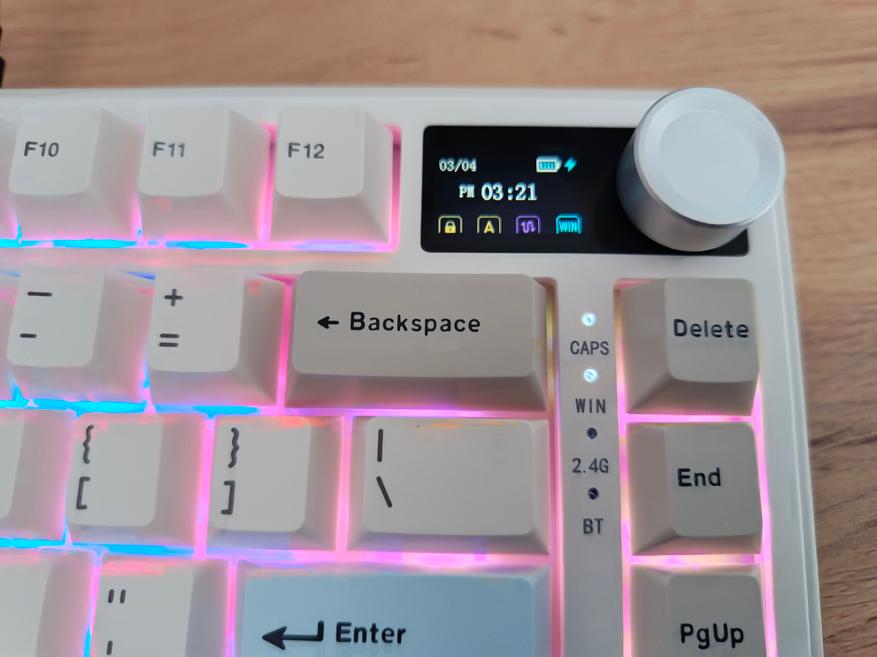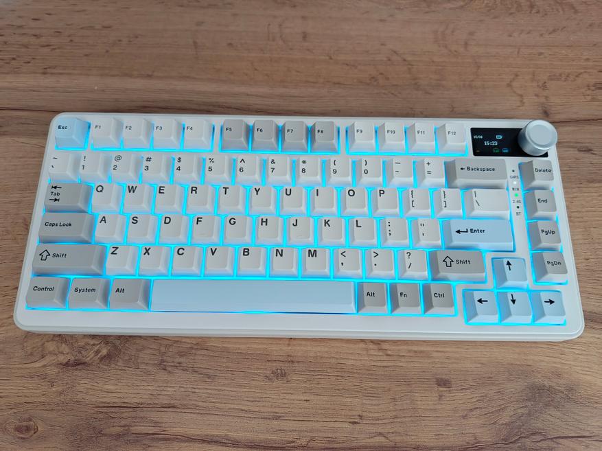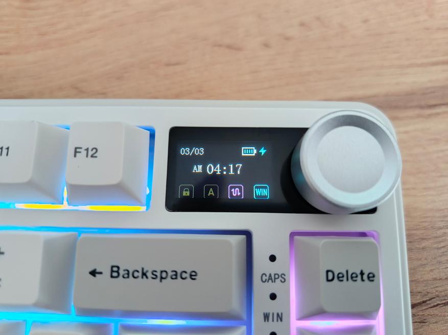 Зарядка осуществляется через Type-C разъём, внутри установлен аккумулятор ёмкостью 8 Ач. Автономность достигает до 30 дней, но это при выключенной подсветке и LCD-дисплее. Если включить подсветку и дисплей, время работы сокращается до примерно 2 суток. Такой показатель является типичным для клавиатур данного класса. При использовании только подсветки без дисплея автономность немного увеличится, но основной потребитель — это подсветка.