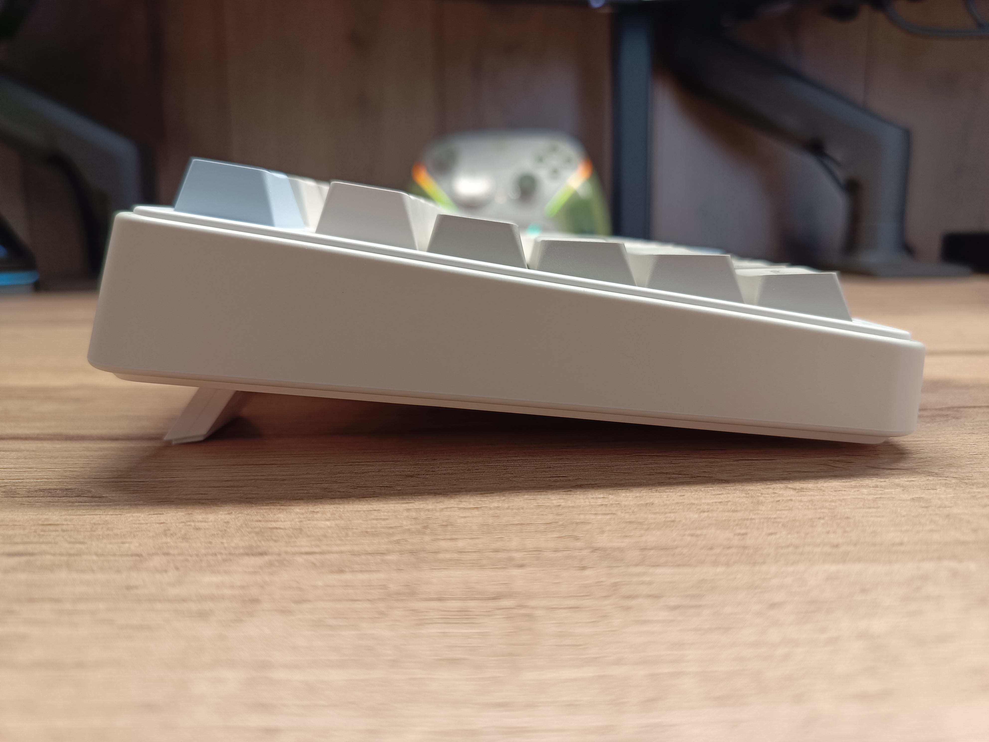 Как вы уже поняли, клавиатура имеет три уровня регулировки угла наклона, что позволяет настроить её под индивидуальные предпочтения пользователя. Кейкапы выполнены в профиле Cherry с лёгким углублением в каждой клавише, а наклон колпачков постепенно сводится к центру клавиатуры, обеспечивая комфортный и естественный набор текста.