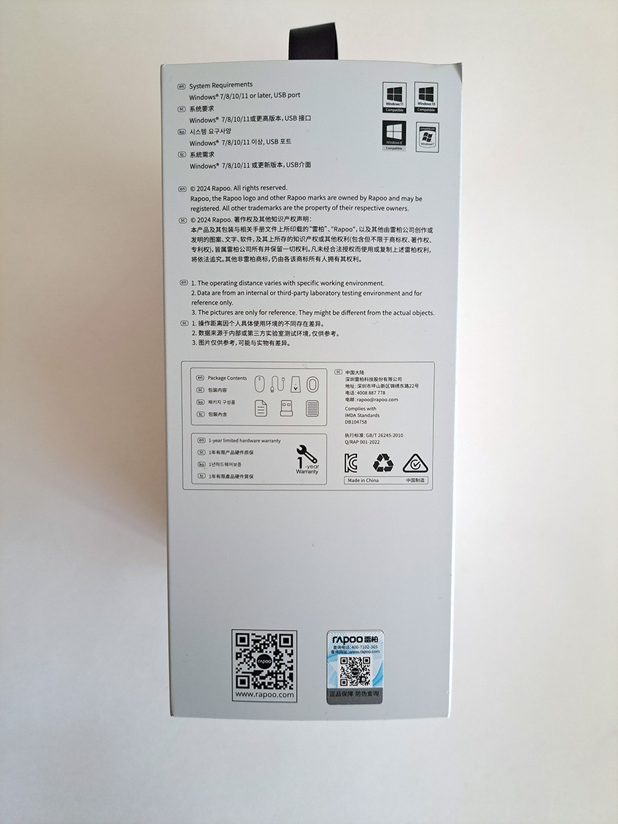 Беспроводной адаптер на торце имеет значок V, что обозначает игровую серию у Rapoo, а также светодиод (зеленый и красный свет), что нечасто встречается у подобных донглов.