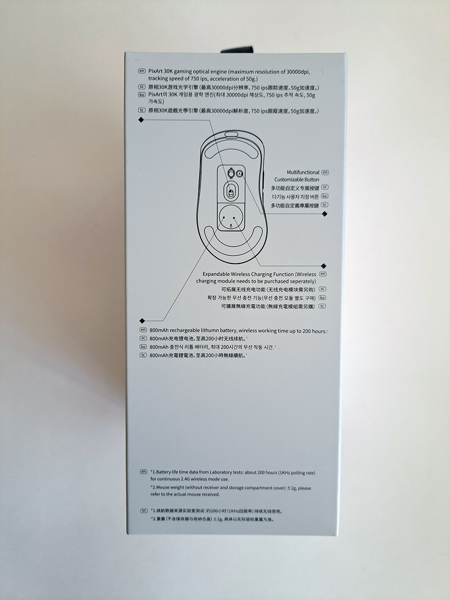 Легкая игровая мышь на основе сенсора PixArt PAW3950 Ultimate с разрешением до 30000DPI. Способна работать как по проводу, так и без, с частотой опроса до 8K. Встроенный аккумулятор может обеспечить до 200 часов работы. Есть опциональная возможность беспроводной зарядки. В фирменном ПО очень много настроек для профессиональных геймеров. Настройки сохраняются во встроенной и облачной памяти.