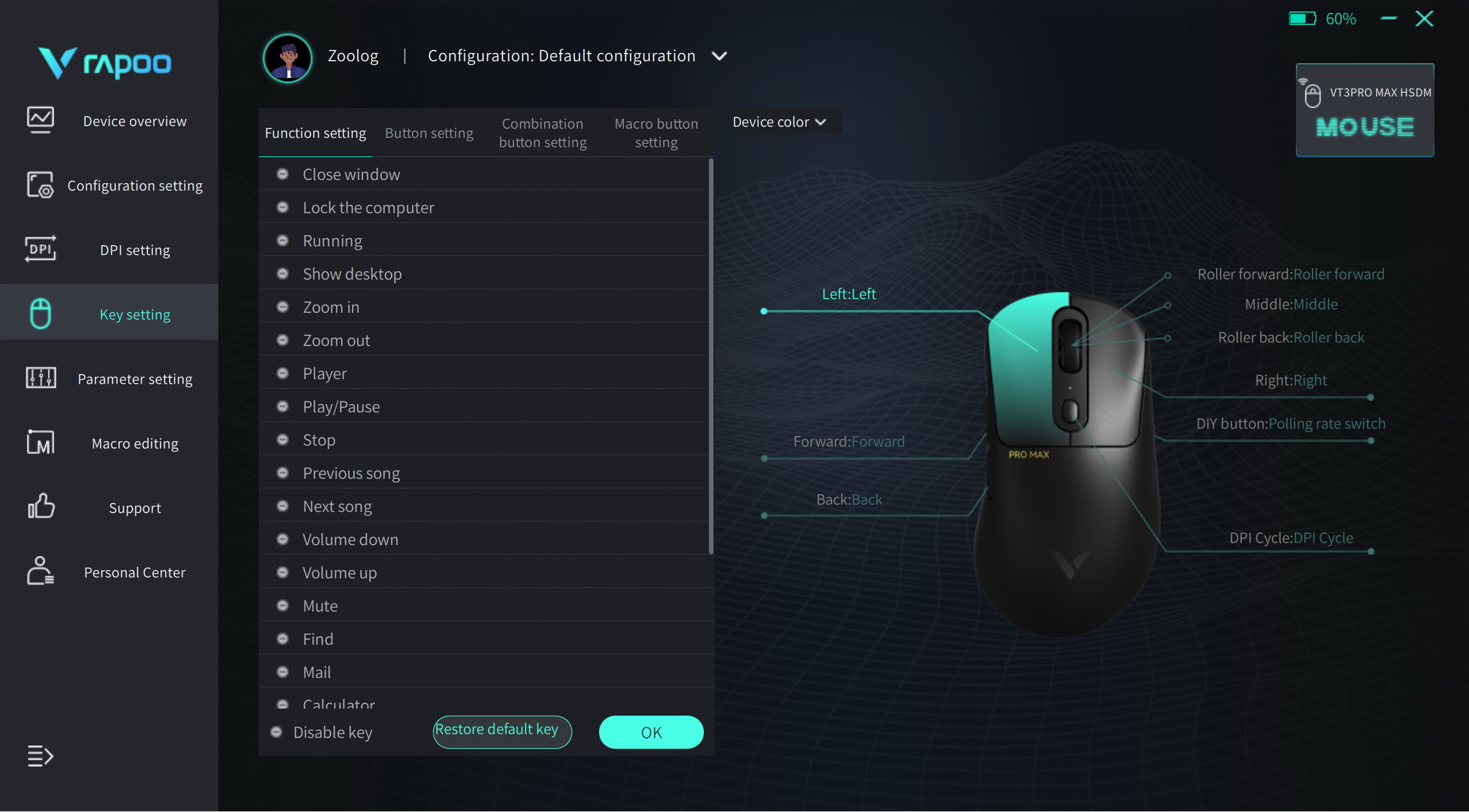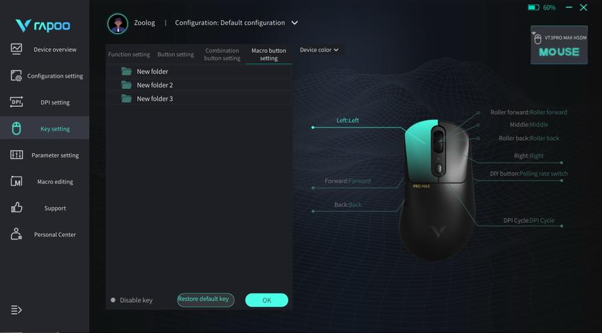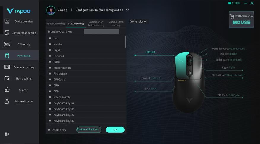 И занятно, что здесь же можно переключить цвет корпуса мыши. В реальности, он, конечно, не изменится, просто поменяется отображение в программе.