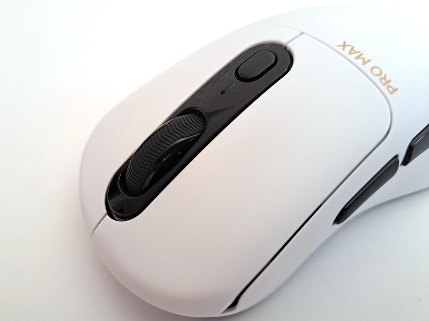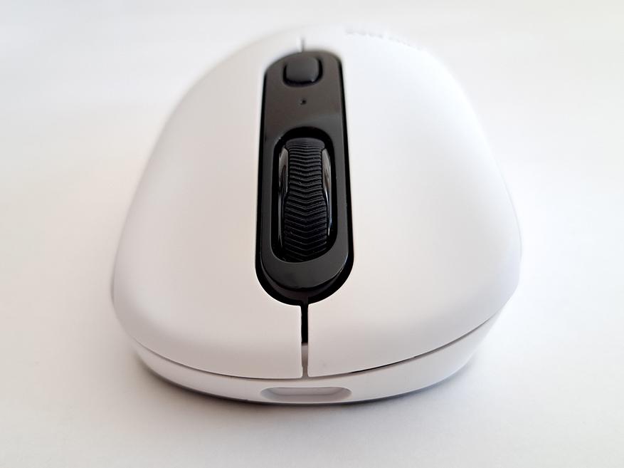 Спереди расположено колесико с цепкой накаткой. Колесико работает на основе энкодера Kailh. Колесико прокручивается с легким треском, усиливающимся при увеличении скорости скролла.