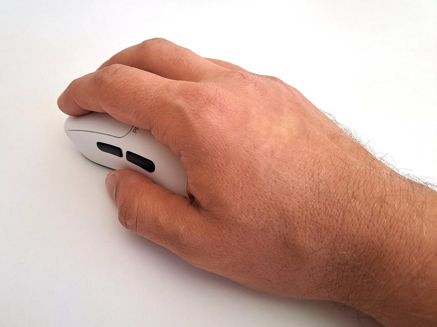 В большой мужской ладони мышка лежит удобно. Спинка у нее с заметным горбиком и хорошо заполняет ладонь. А вот пальцевым хватом горбик может мешать работать.