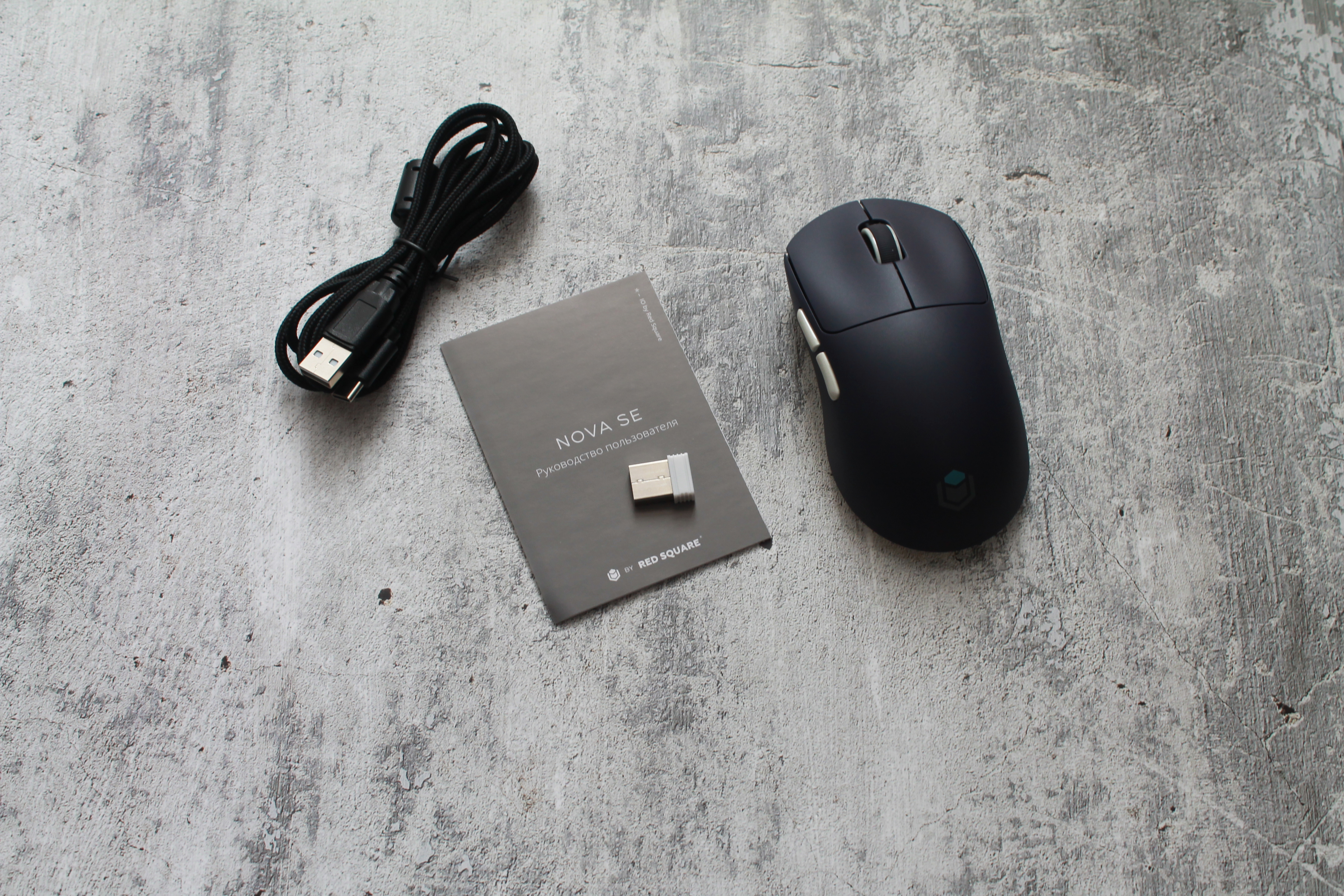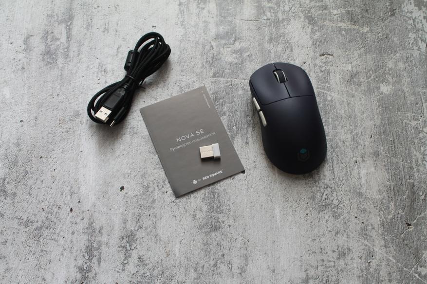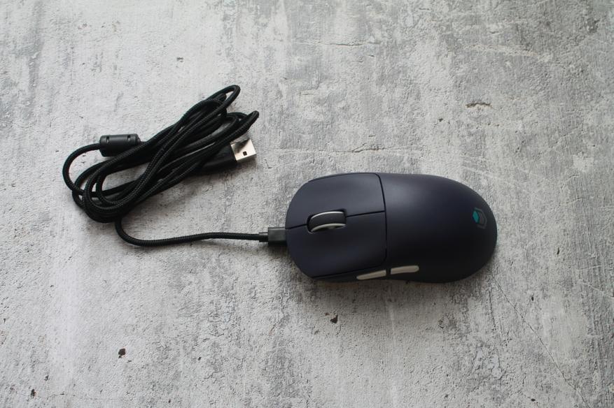 Кабель USB-C выполнен в черном цвете и имеет тканевую оплетку. Пользоваться мышью можно как по кабелю, так и по беспроводному соединению.