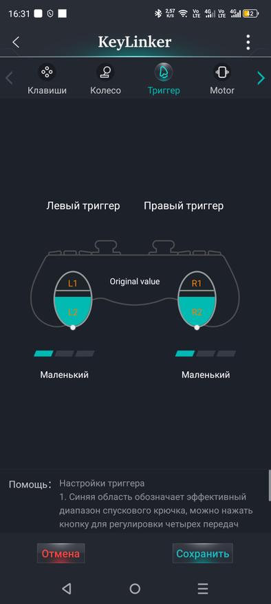 И что меня особенно поразило, чего я раньше нигде не видел, — это возможность преобразования аналоговых триггеров в цифровые. Ползунки по бокам стикера переводят из одного положения в другое. Это, безусловно, удобно, так как, например, в гонках нужны аналоговые триггеры, и где скорость автомобиля зависит от степени нажатия.