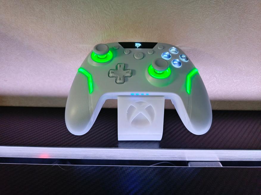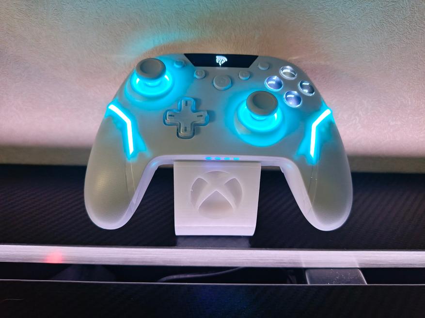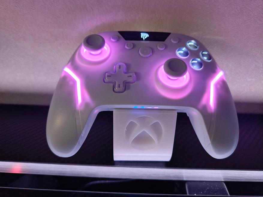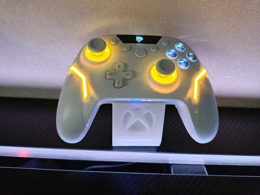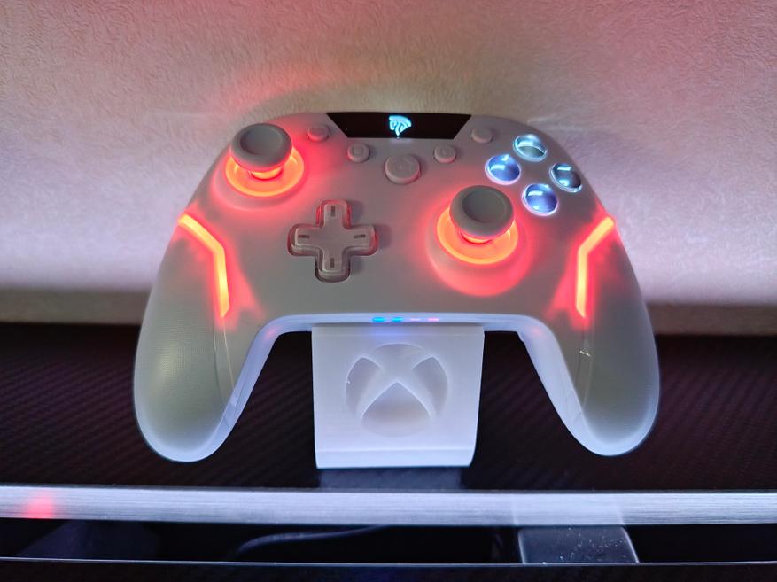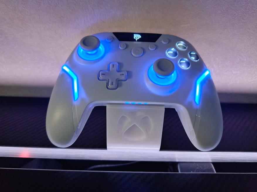 Подсветка смотрится классно, и огромный плюс, что светится не только корпус, но и кнопки A, B, X, Y. Зачастую производители уделяют внимание подсветке только корпуса, а на кнопках отсутствует. Например, мне она не столь нужна, как моей дочке, которая иногда посматривает на геймпад во время игры.