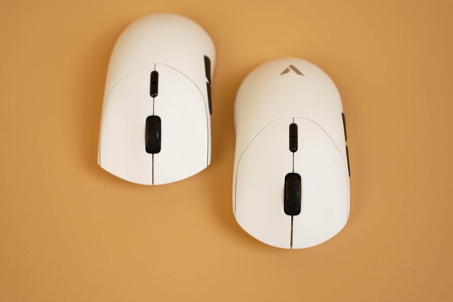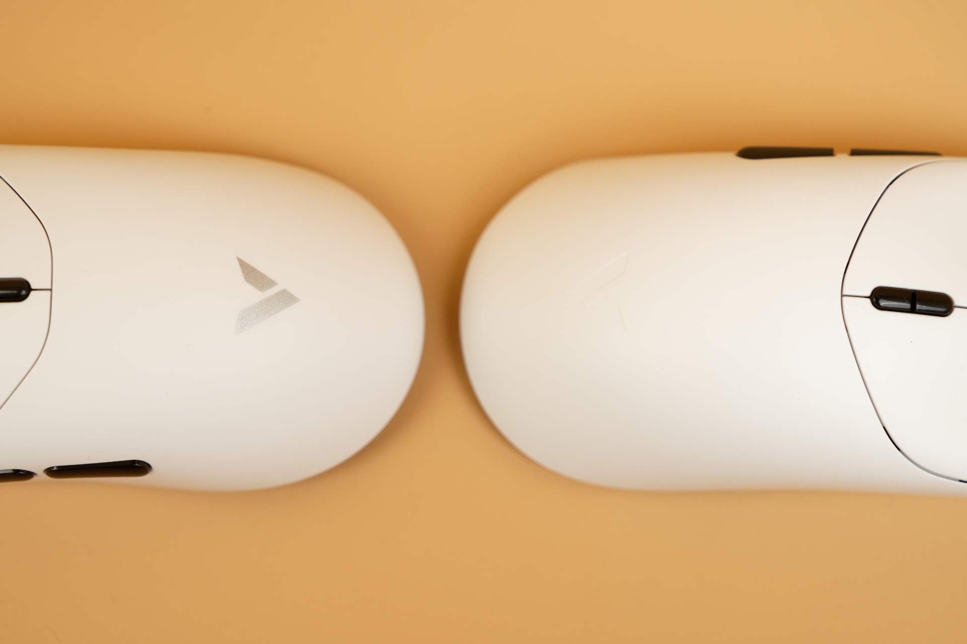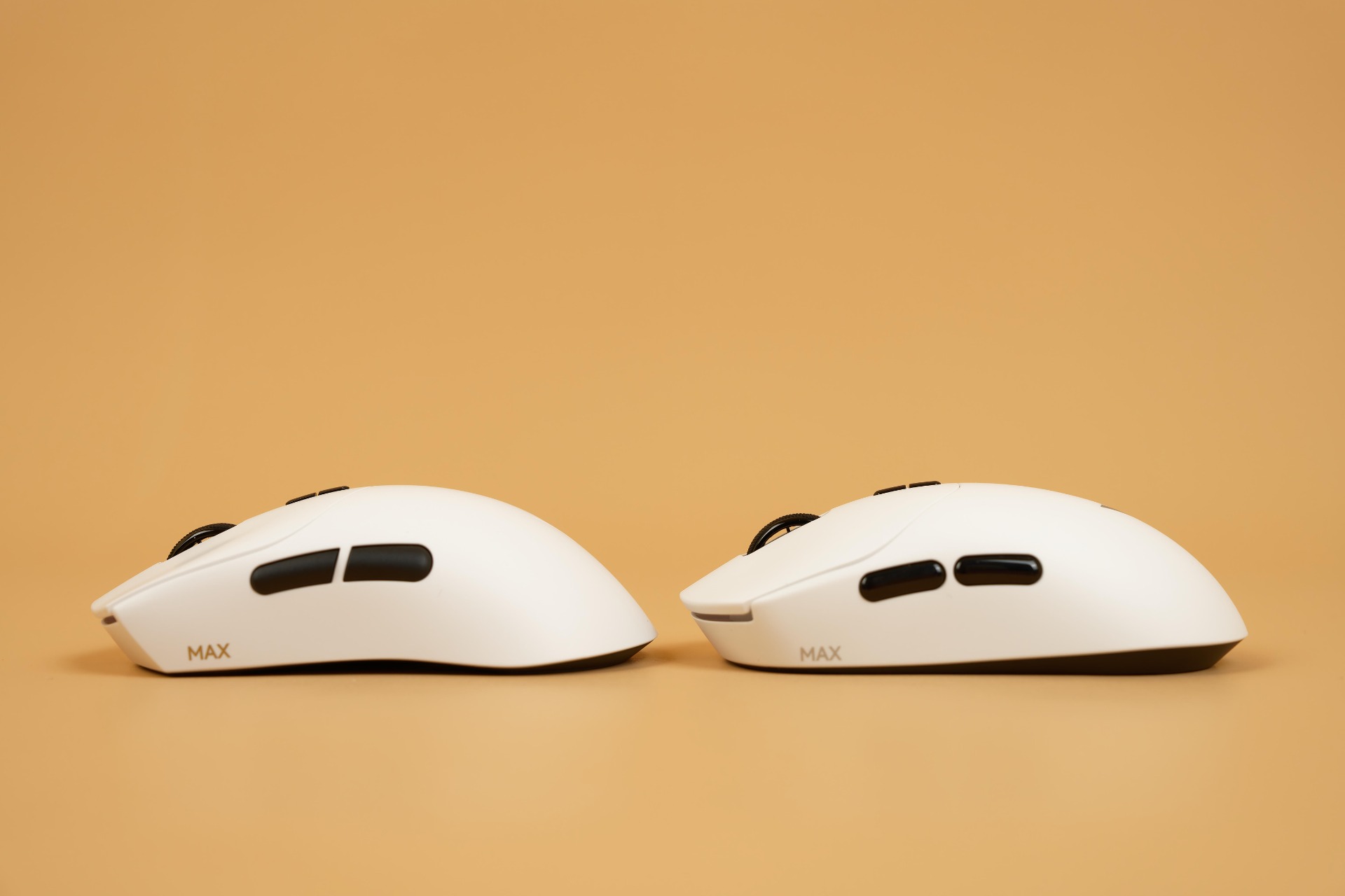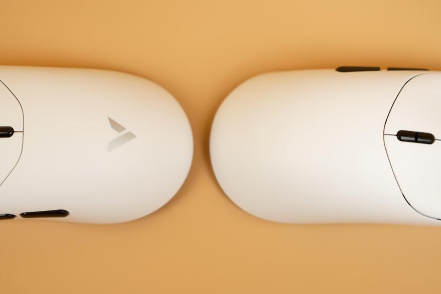 Согласно техническим характеристикам, габариты моделей составляют: у Rapoo VT2MAX — 126 x 63 x 40 мм, у Rapoo VT7MAX — 127 x 64 x 40 мм. Визуально эти отличия без прямого сравнения заметить сложно, однако в процессе использования разница в ощущениях становится ощутимой. Для более наглядного сравнения, приложил мышки друг к другу.