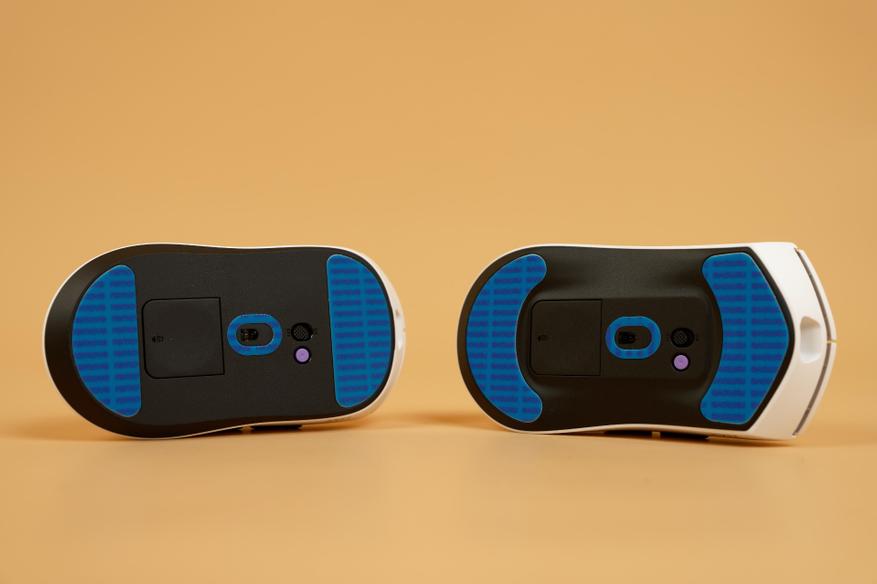 Колесо прокрутки у обеих моделей унифицировано: оно оснащено резиновой вставкой с насечками и глянцевыми боковинами. Кнопки переключения DPI также идентичны.