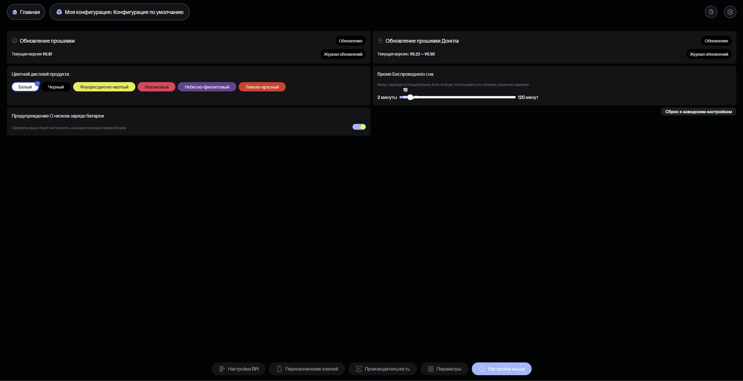 Приятно, что в настройках A HUB каждая мышь отрисована и указан её цвет: вроде бы мелочь, а радует глаз.
