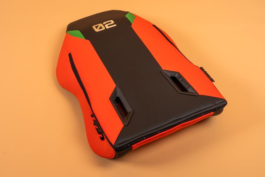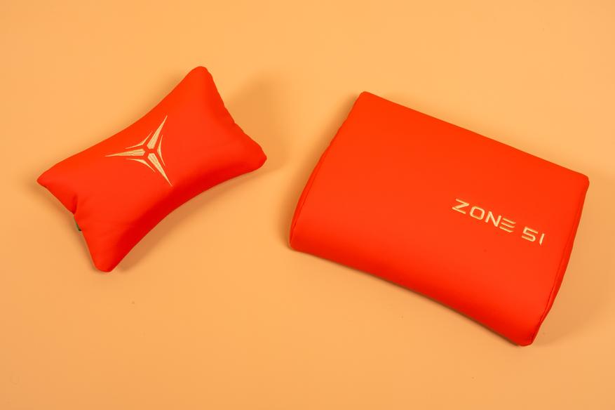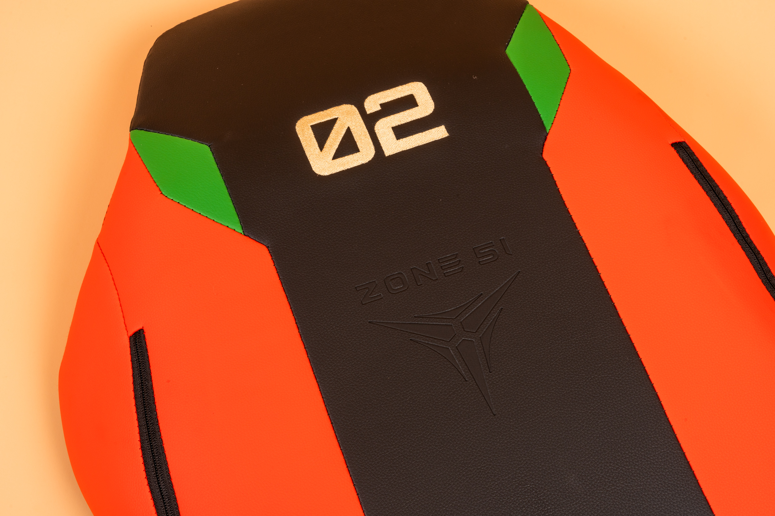 На верхней части спинки расположены два типа брендинга: цифры «02» выполнены методом вышивки, а логотип Zone 51 нанесен методом горячего тиснения.