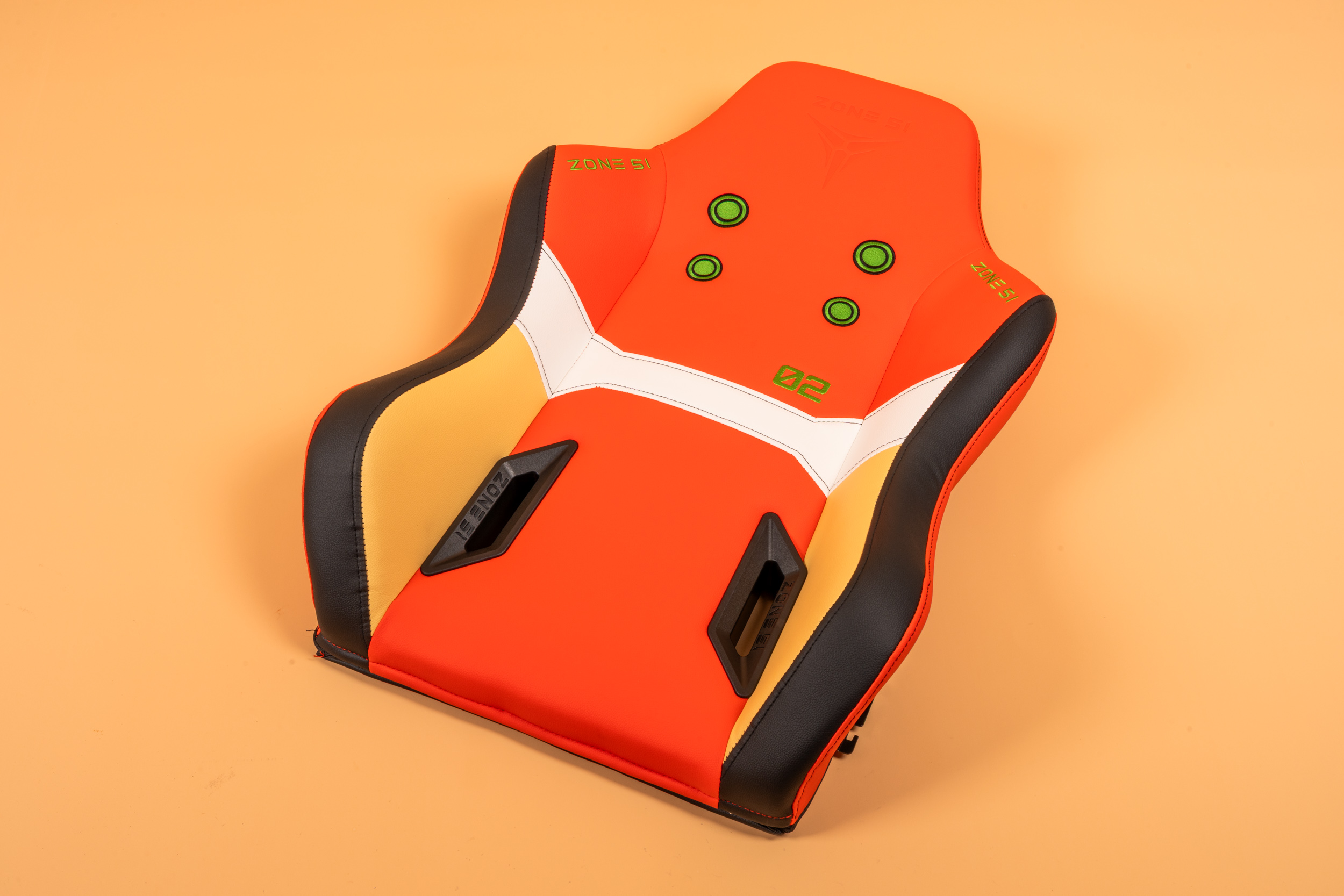 Основой любого кресла является спинка и сиденье, в Zone 51 EVA-02. Каркас сиденья изготовлен из углеродистой стали методом сварки. В качестве наполнителя используется формовая пена плотностью 60 кг/м³, которая демонстрирует повышенную устойчивость к деформации и проседанию. Материал также обладает свойством увеличивать сопротивление при сжатии, что способствует сохранению формы сиденья при длительных нагрузках. Поверхность сиденья обита экокожей.