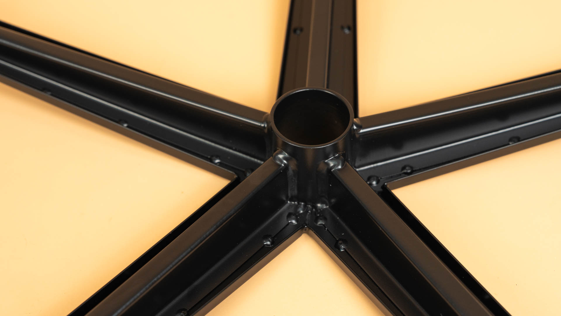 Основание представляет собой цельнометаллическую пятилучевую крестовину, усиленную рёбрами жёсткости.