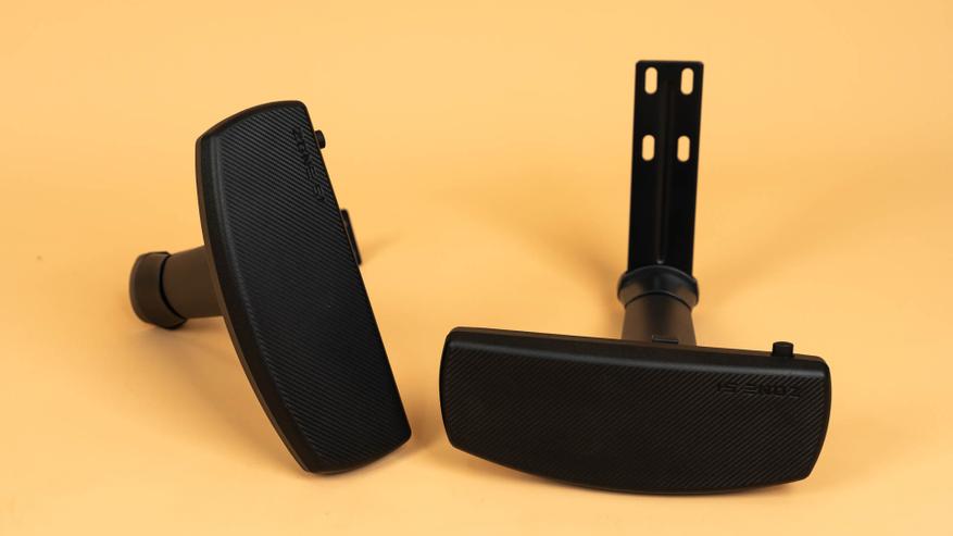 Подголовник удобен по форме и плотности, его регулировка по высоте позволяет оптимально разместить подушку как при прямом, так и при откинутом положении спинки. Поясничная подушка отличается удачной эргономикой: компактная полукруглая форма не уменьшает полезную глубину сиденья, при этом обеспечивает выраженную поддержку поясницы. Жесткость наполнителя сбалансирована, а диапазон регулировки по высоте позволяет точно настроить положение.
