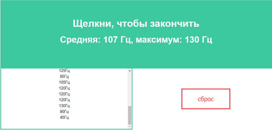 Данные по ускорению, полученные в онлайн-сервисе «Кликер-тест».