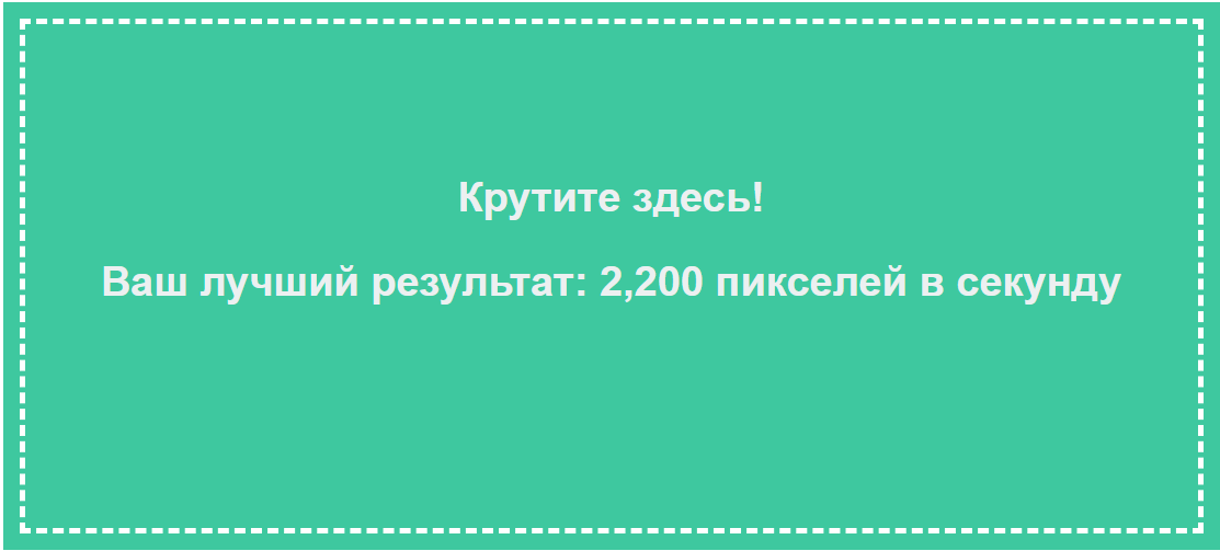 Колесико выдает стандартные значения по скролу в 2200 пикселей в секунду.