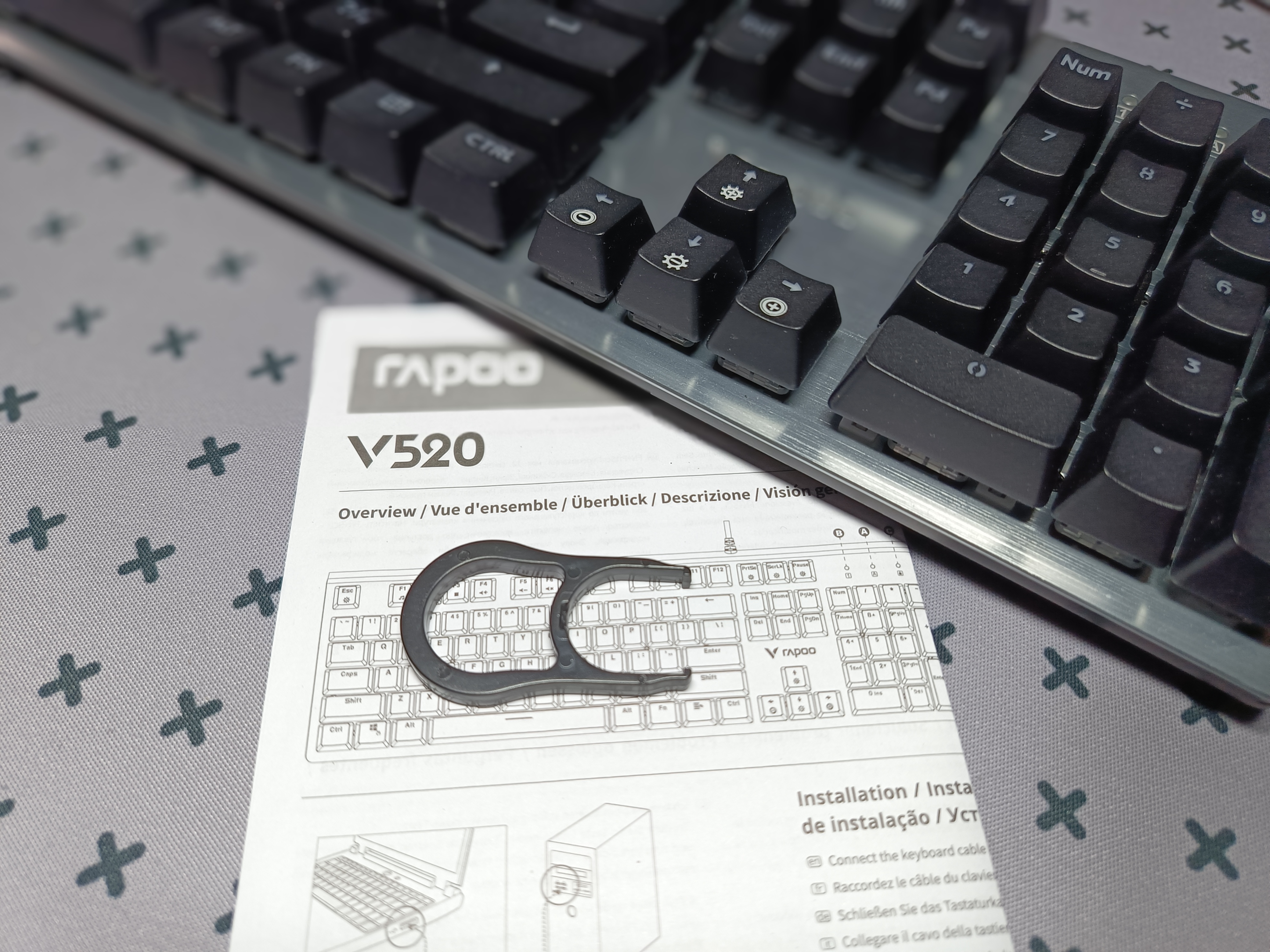 Rapoo V520 выполнена в формате «скелетон» и отличается лаконичным, сдержанным дизайном. На первый взгляд она напоминает классическую офисную клавиатуру, но при этом позиционируется как игровая. Такой универсальный стиль позволяет использовать её как для динамичных игровых баталий, так и для повседневной работы — будь то набор текста или работа с таблицами.