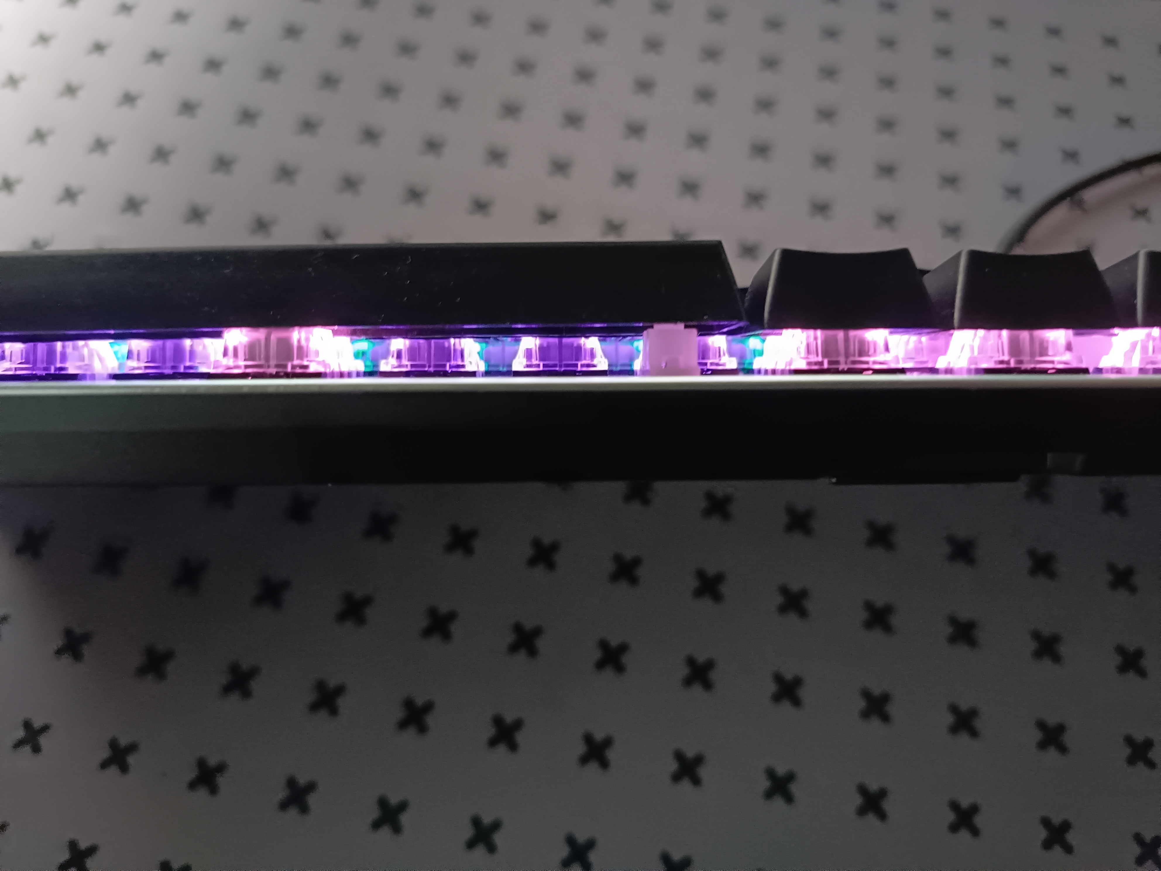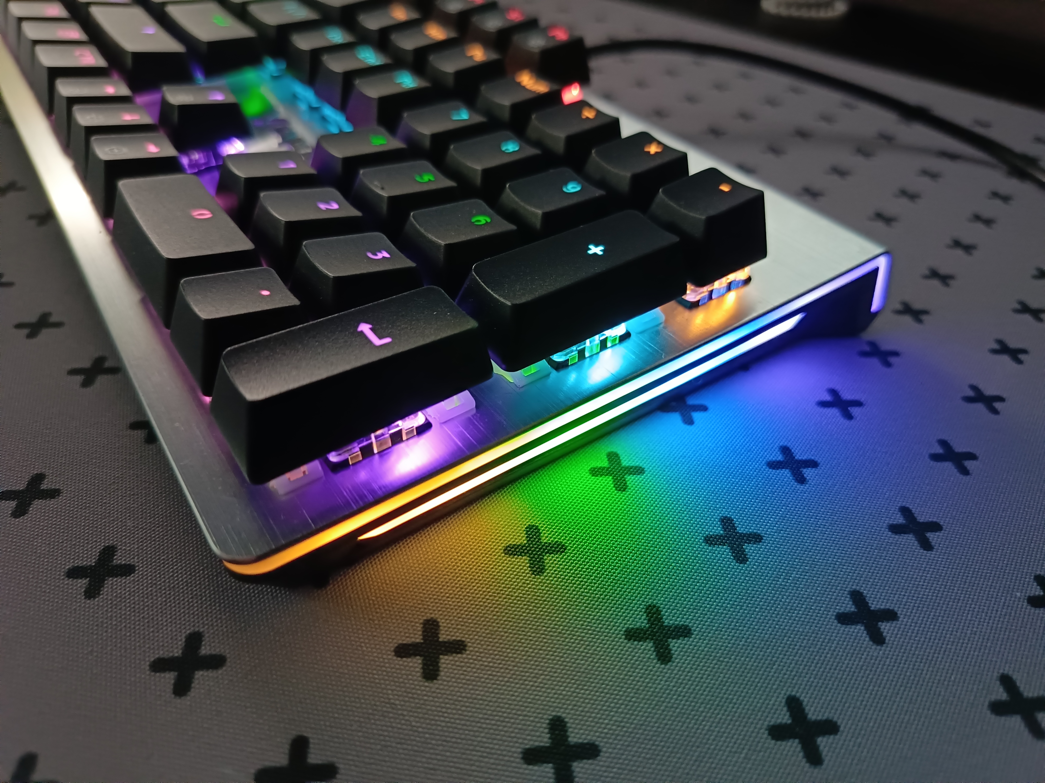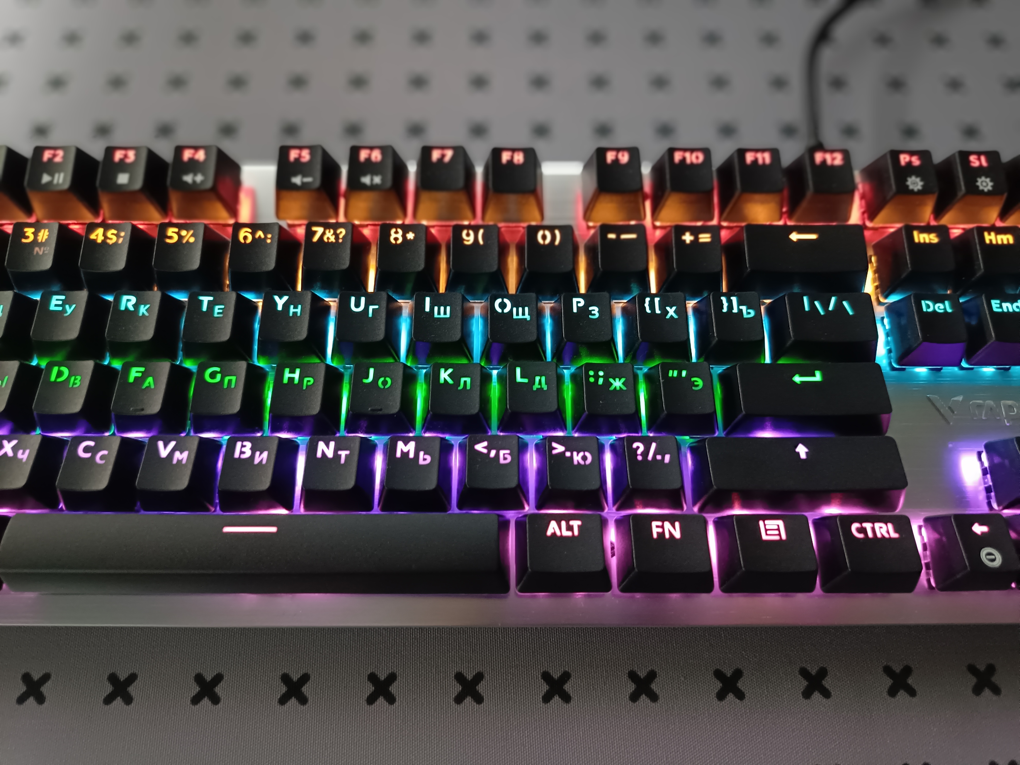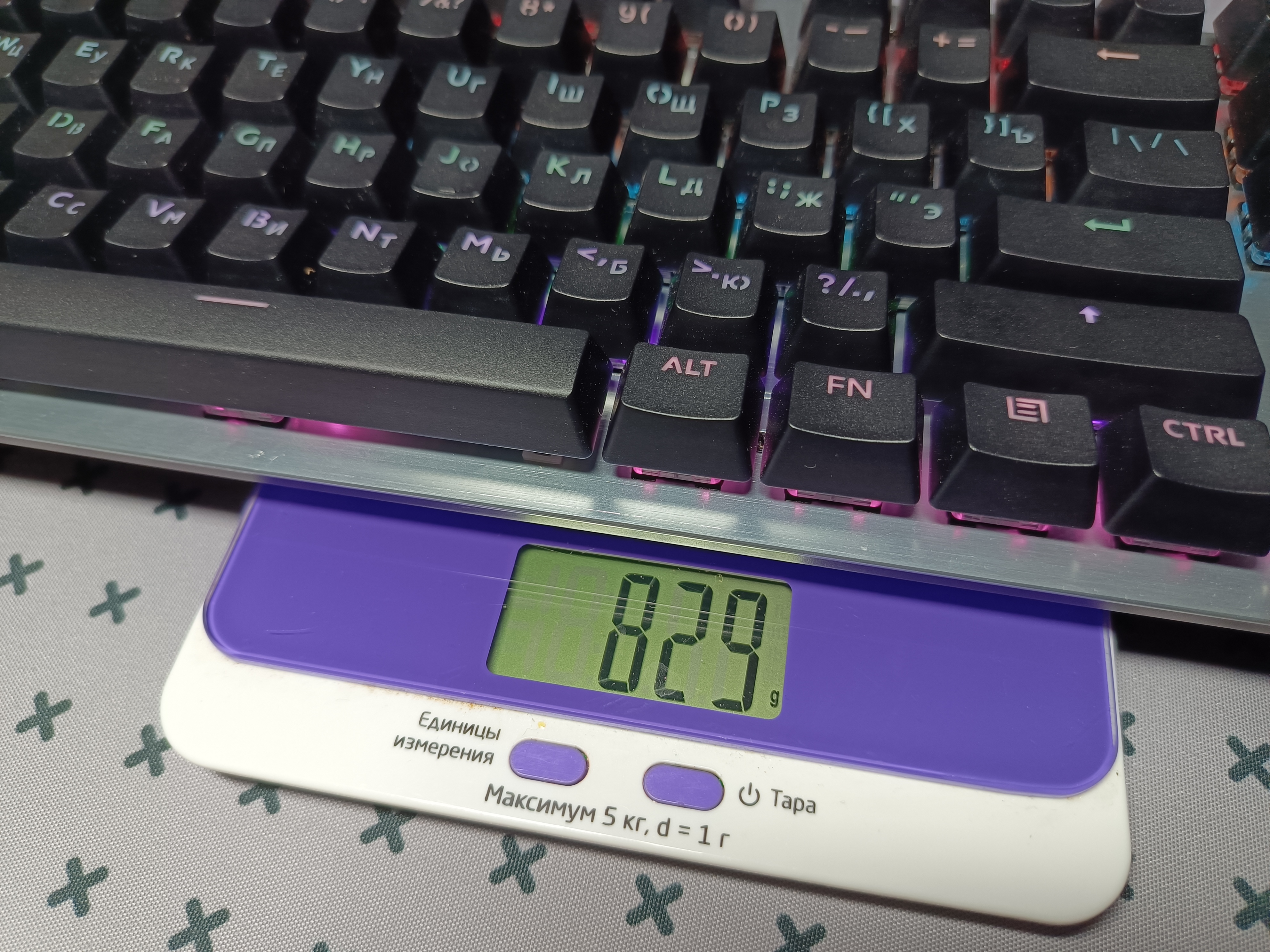 Клавиатура оставила у меня положительное впечатление. За свою цену она предлагает отличное качество сборки, удобную полноразмерную раскладку и яркую двухконтурную подсветку. Металлическая пластина делает её надёжной и устойчивой, а PBT-колпачки порадовали подсветкой символов.