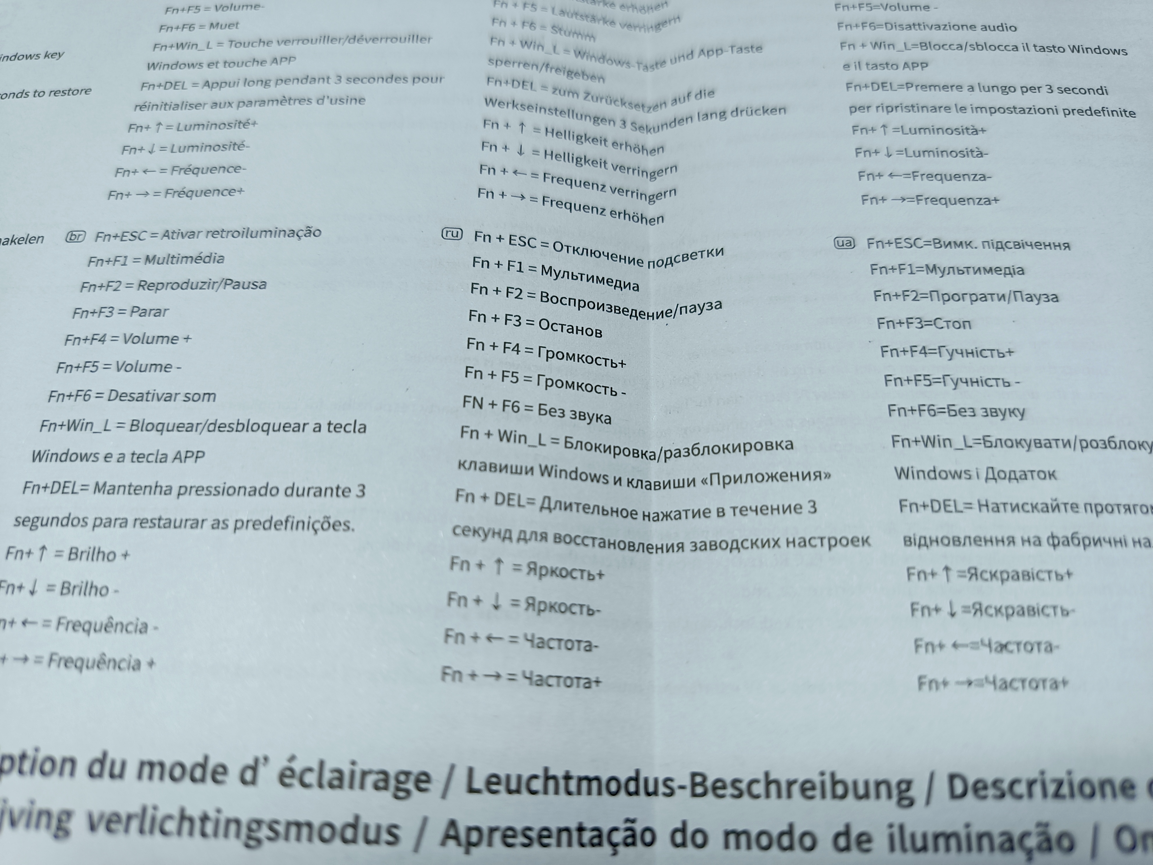 Rapoo V520 оснащена двухконтурной подсветкой. Основная подсветка клавиш — яркая, равномерная и насыщенная, при этом подсвечиваются не только промежутки между кнопками, но и сами символы, что делает её функциональной, а не только декоративной. В темноте это особенно удобно. Подсветка не меняет цвет свечения, а светится теми цветами, что вы можете видеть на фотографиях ниже. Максимум, что можно сделать, это изменить яркость подсветки или вовсе ее выключить.