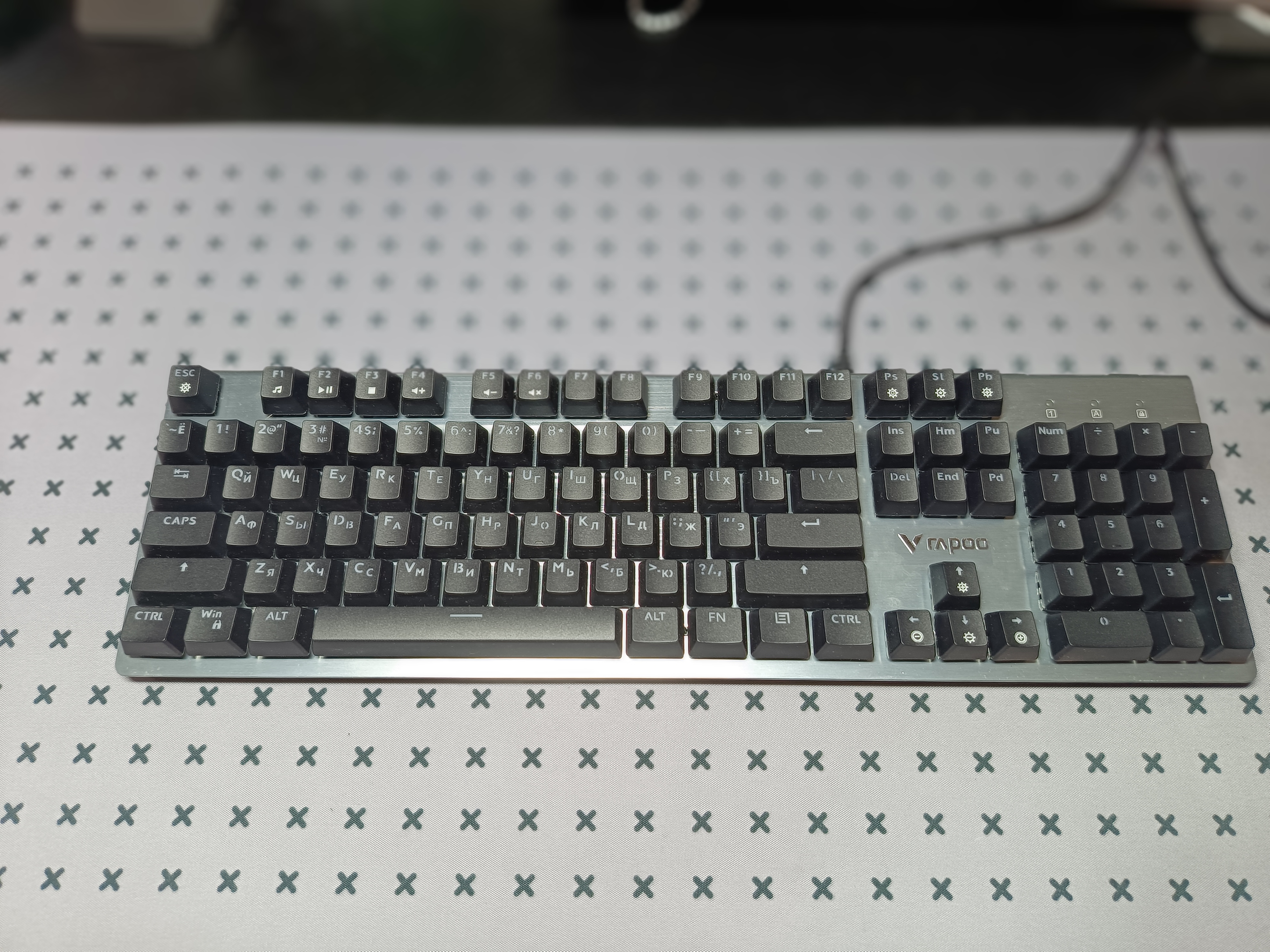 В этой модели установлены свитчи Rapoo Silver. Ресурс у них около 50 миллионов нажатий. Свитчи впаяны в плату, а значит, системы Hot Swap здесь нет. В целом это некритично, даже если какой-нибудь свитч выйдет из строя, то его можно перепаять.