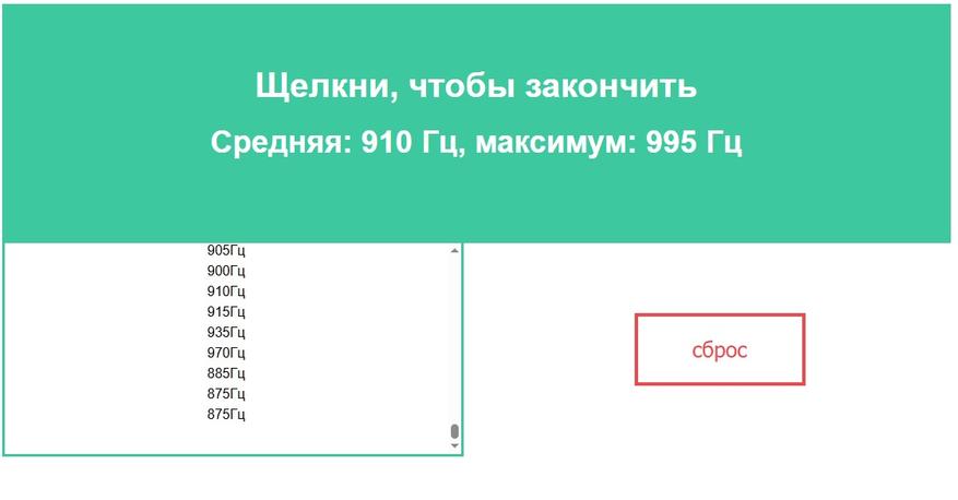 При помощи онлайн сервиса klik-test был произведен замер частоты опроса. С выставленным режимом 1000 Гц мы получаем 995 Гц.