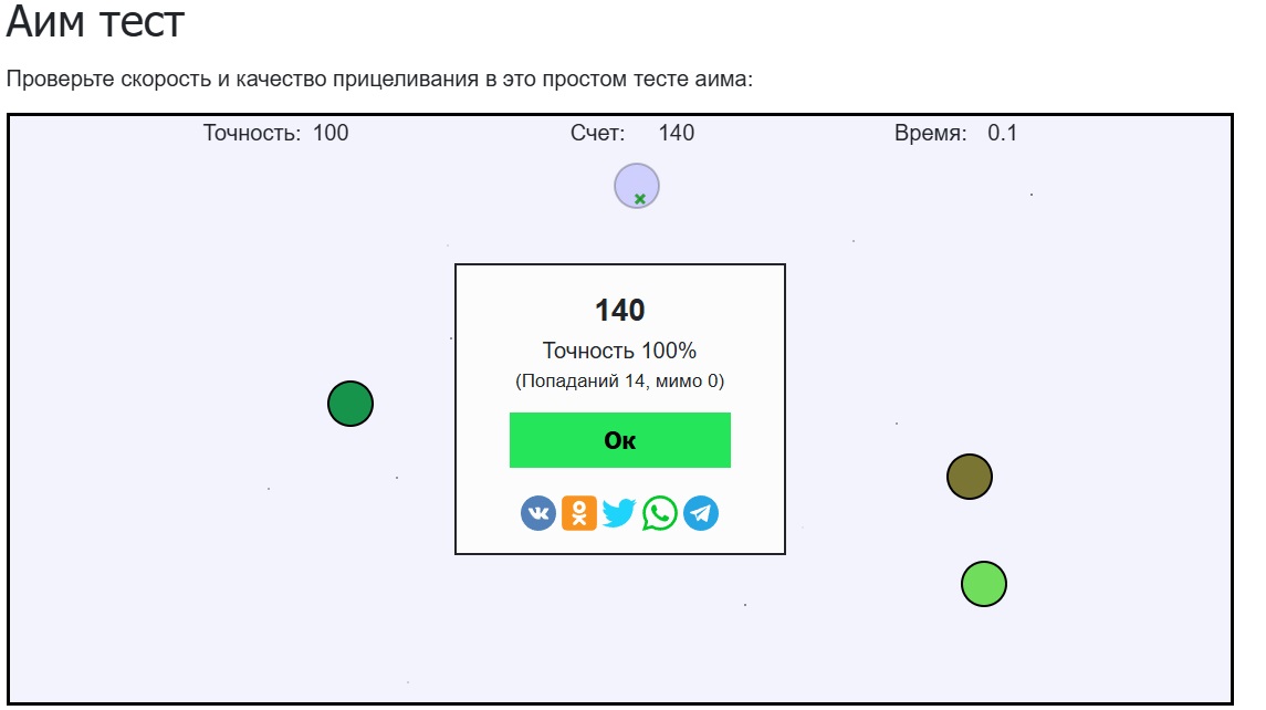 В АИМ тесте мы набираем 140 баллов и 100 % точности.