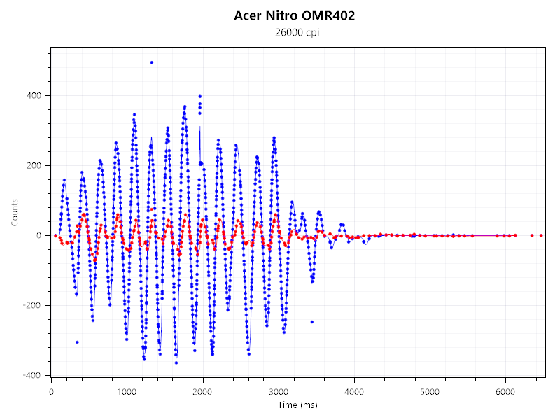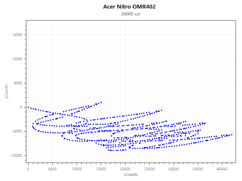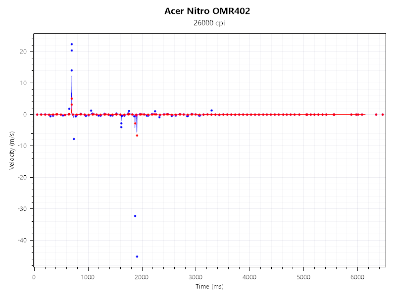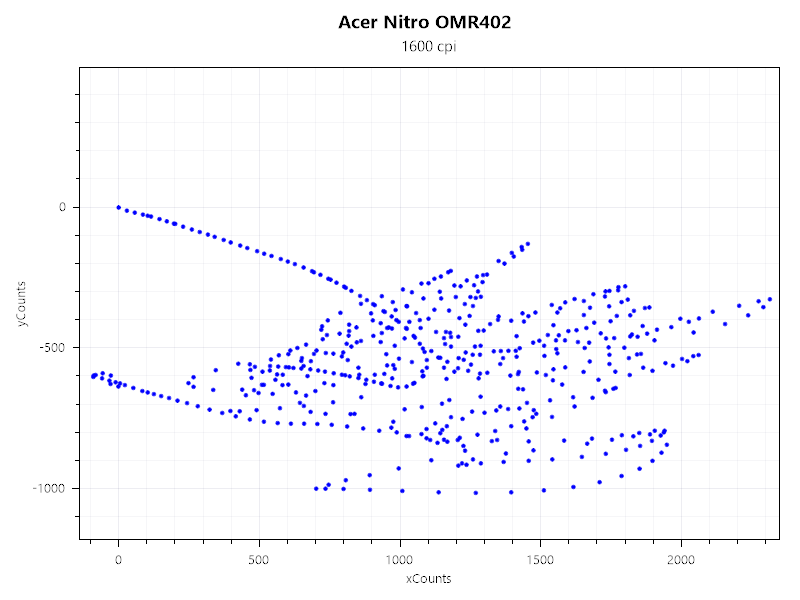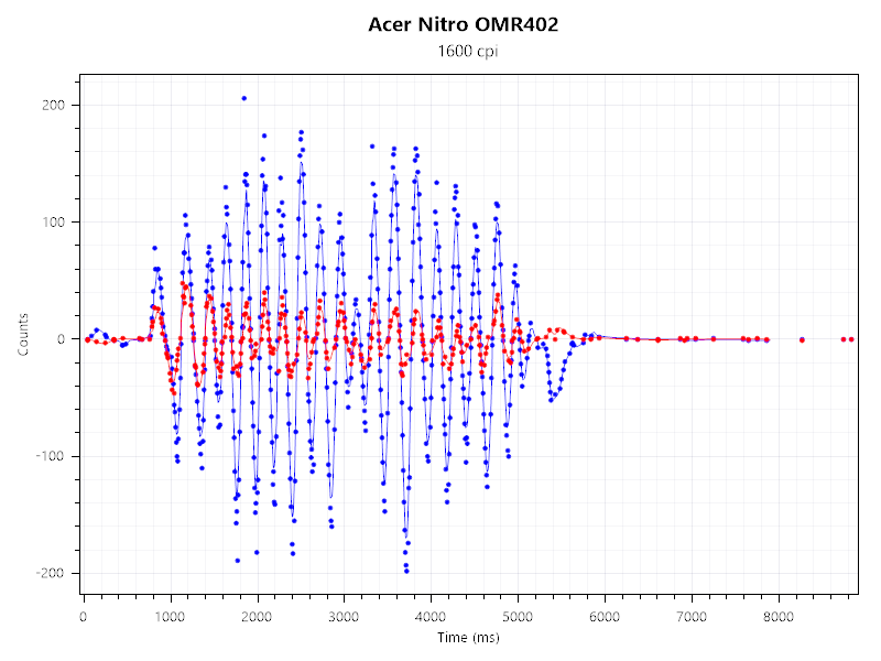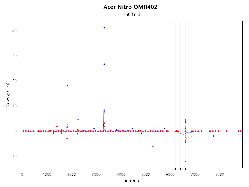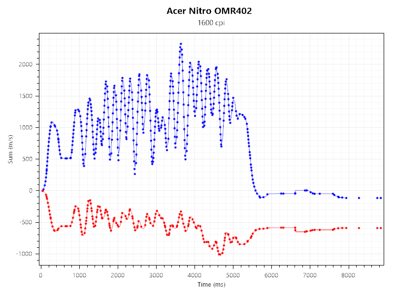 Тестирование игровой мышки Nitro OMR402 осуществлялась при 1600 DPI с использованием поставляемого в комплекте адаптера, настроенного на частоту опроса 1000 Гц. Результаты тестирования на скриншотах ниже.