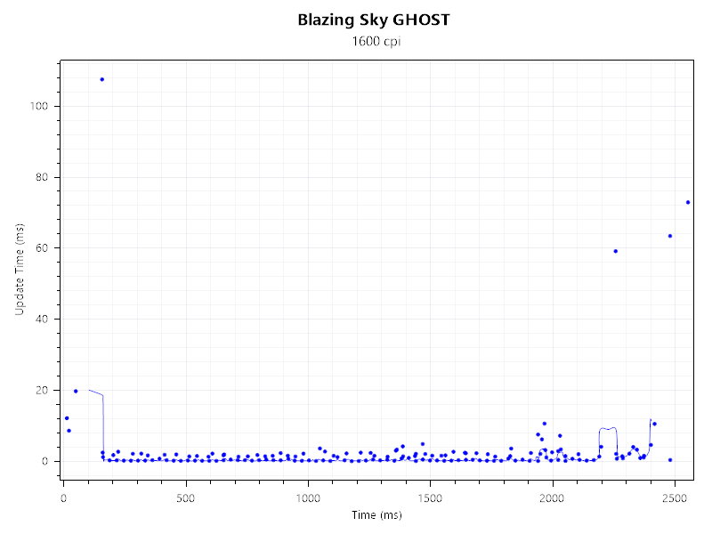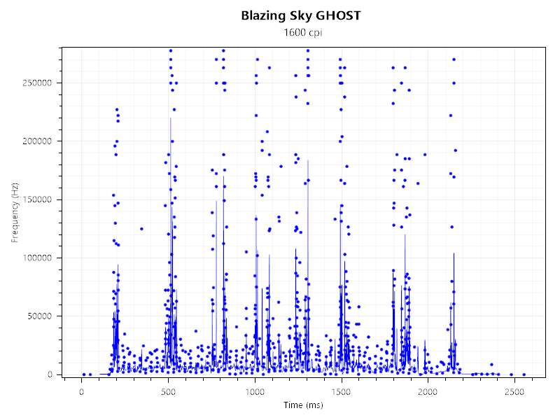 Как и писалось выше, мышь Blazing Sky GHOST Ultimate оснащена оптическим сенсором PixArt PAW3950 Ultra — актуальной флагманской моделью, обеспечивающей стабильное отслеживание без потерь сигнала. Максимальная частота опроса устройства составляет 8000 Гц, и именно в этом режиме проводилось тестирование: соединение оставалось устойчивым, а связка с микроконтроллером Nordic 54L15 работала без нареканий.
