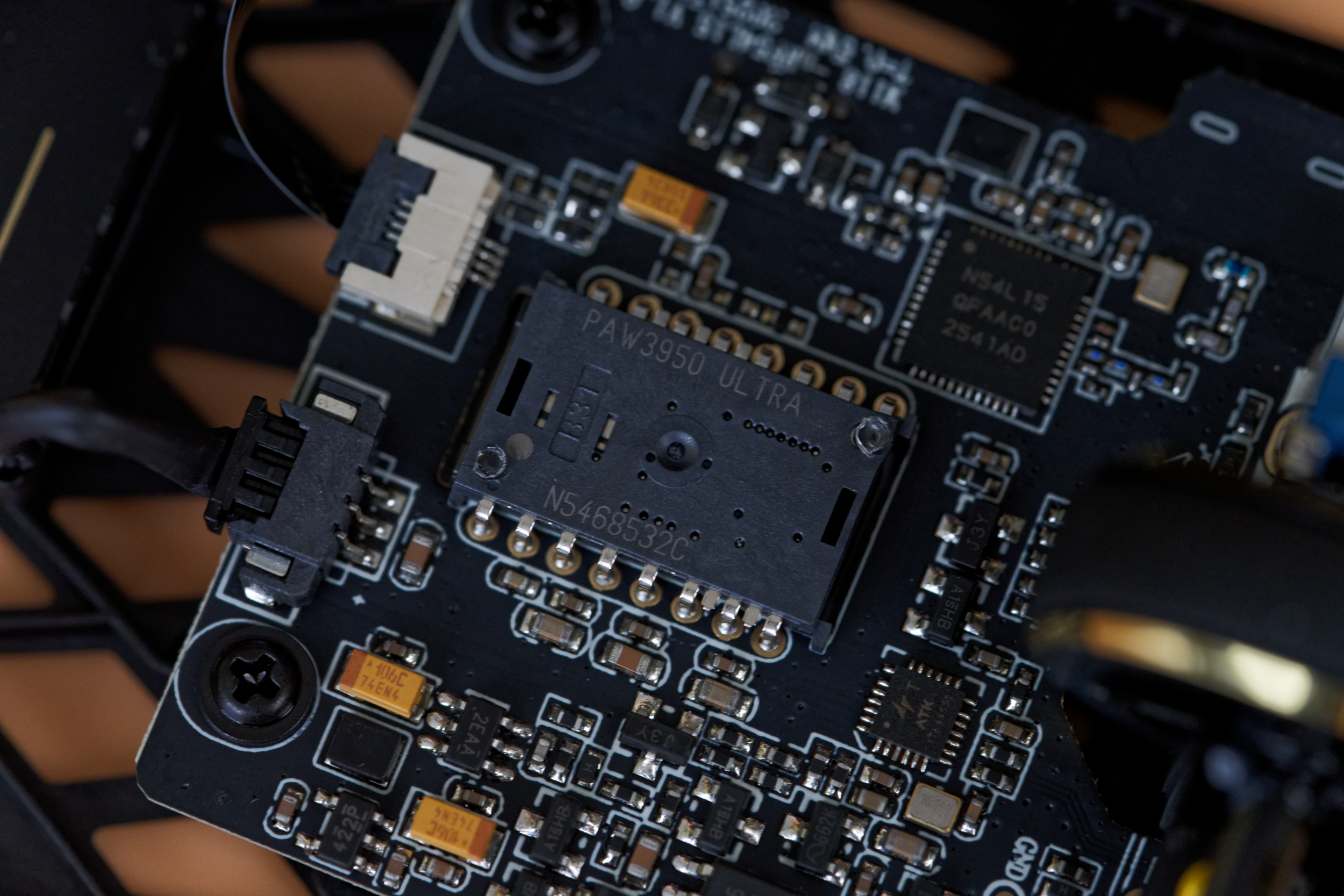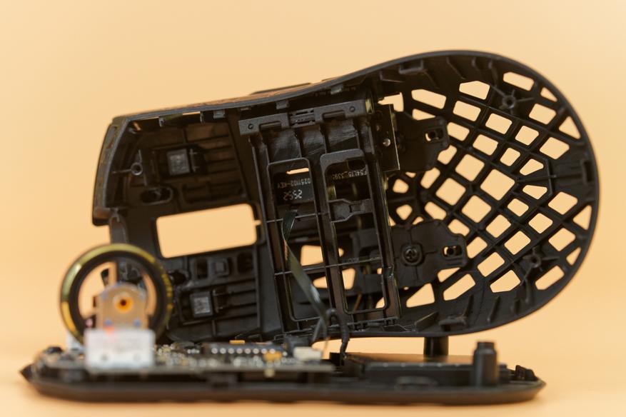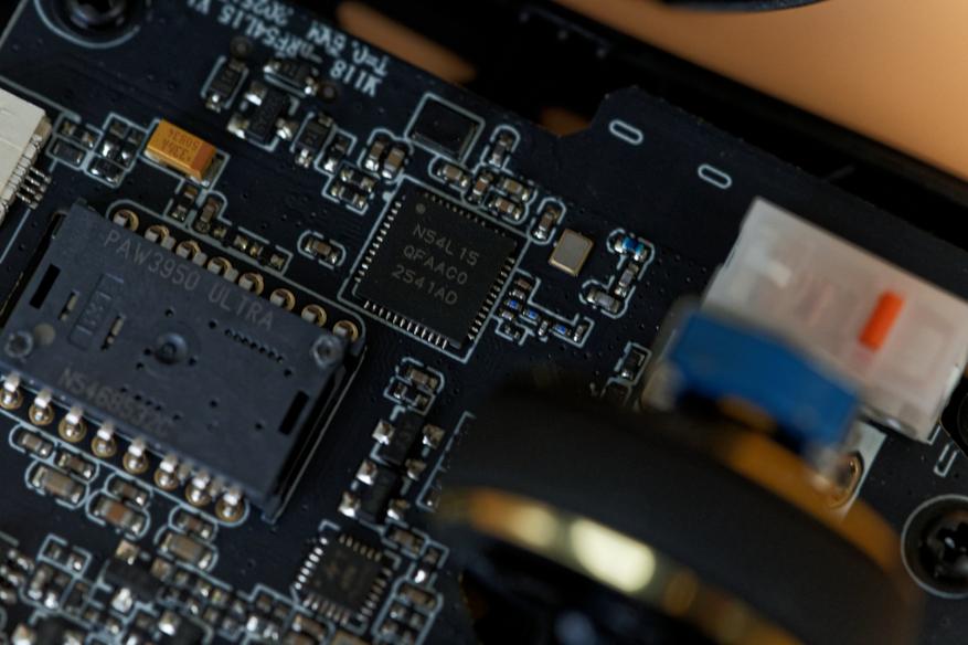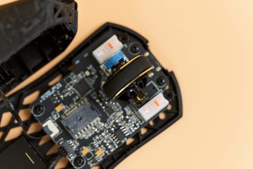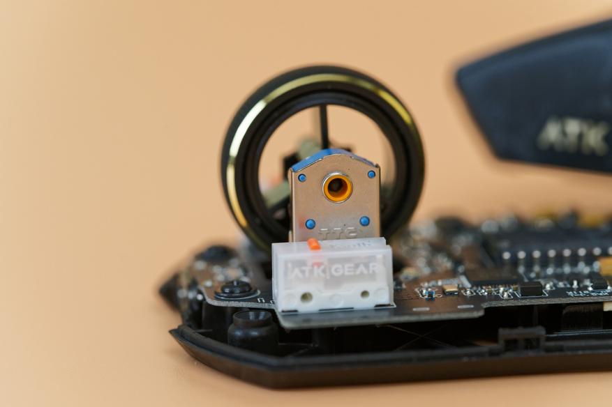 После разбора мыши внимание привлечет оптический сенсор PixArt PAW3950 Ultra: разрешение до 42 000 DPI, скорость отслеживания 750 IPS и ускорение 50G. За управление всем этим великолепием отвечает микроконтроллер Nordic 54L15, воплощение скорости и отзывчивости, гарантирующий минимальные задержки. Основные клавиши оснащены механическими свитчами ATK Lightblade, каждое нажатие которых будет отточено и четко. За колесико отвечает энкодер TTC Gold, отличающийся исключительной точностью и долговечностью.