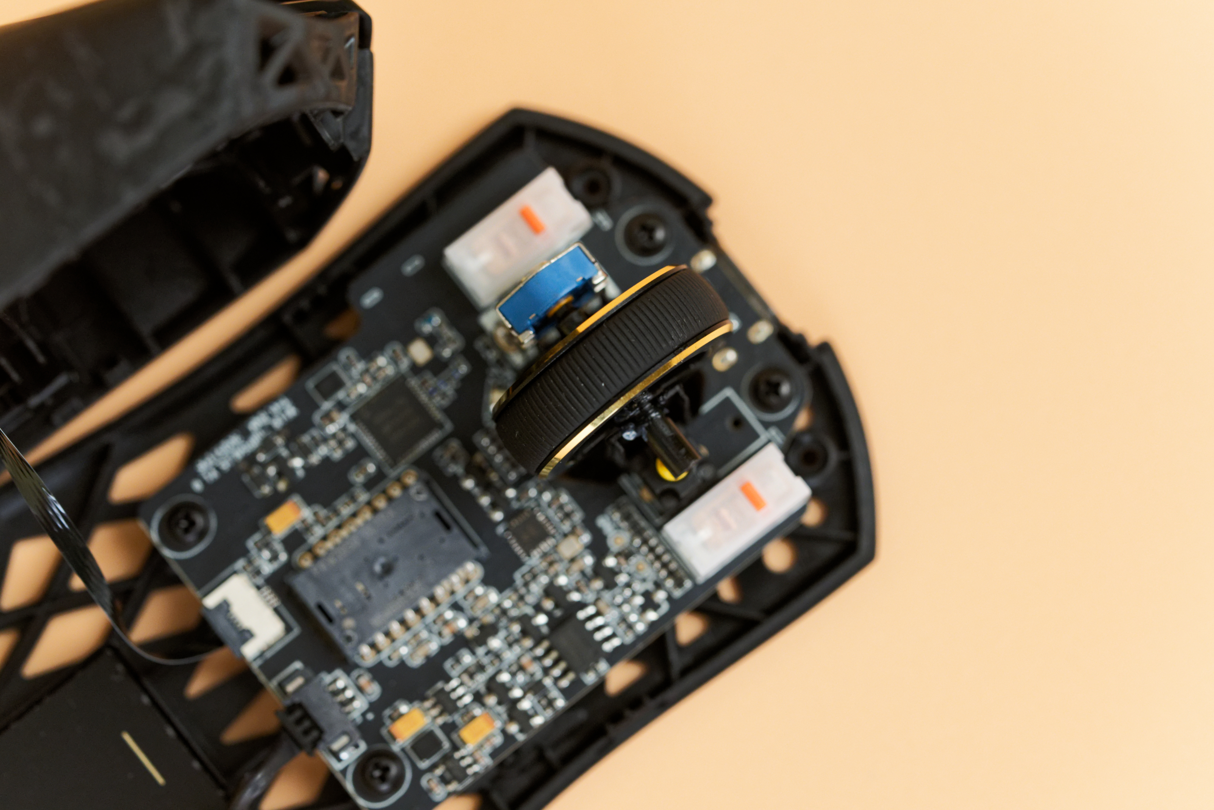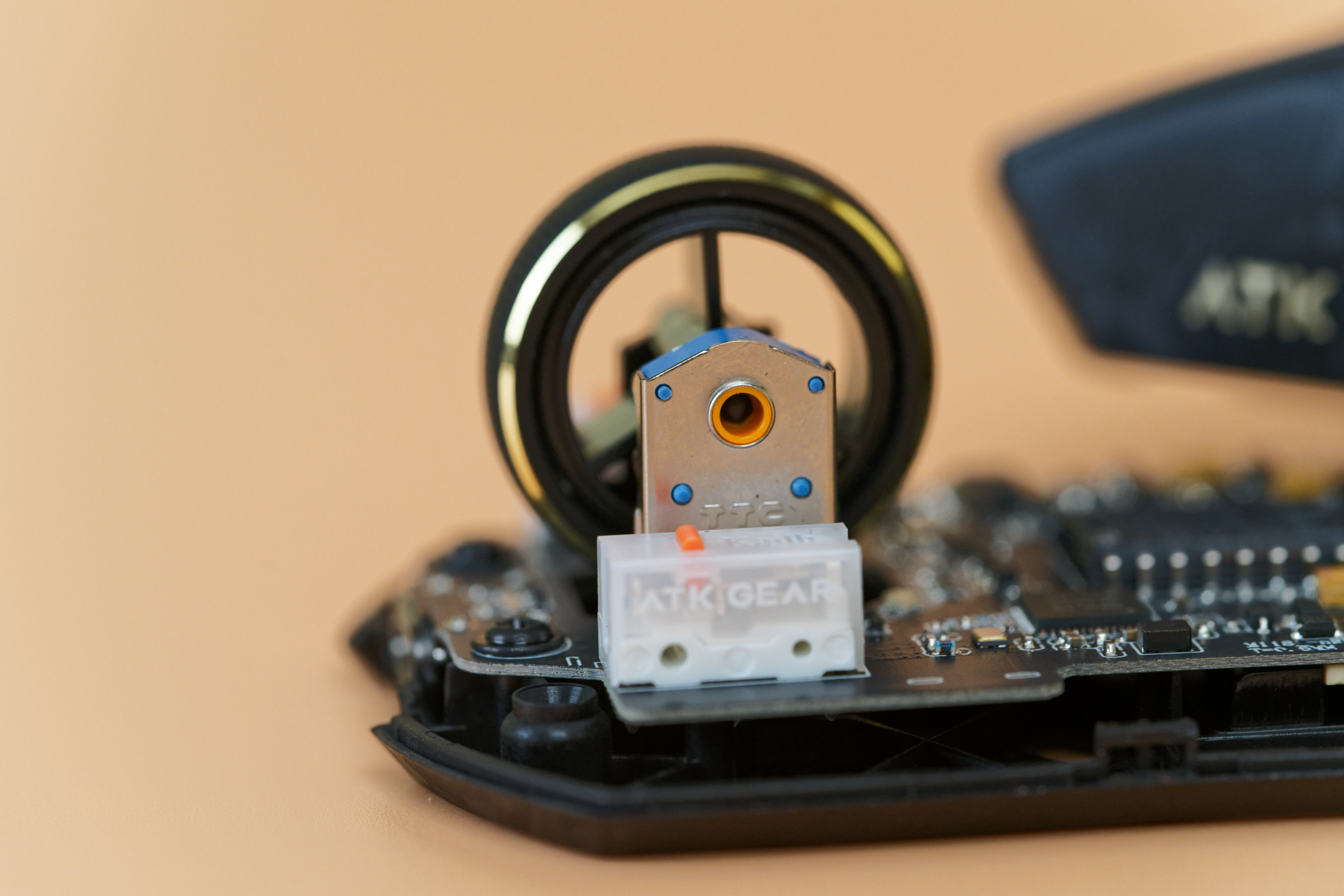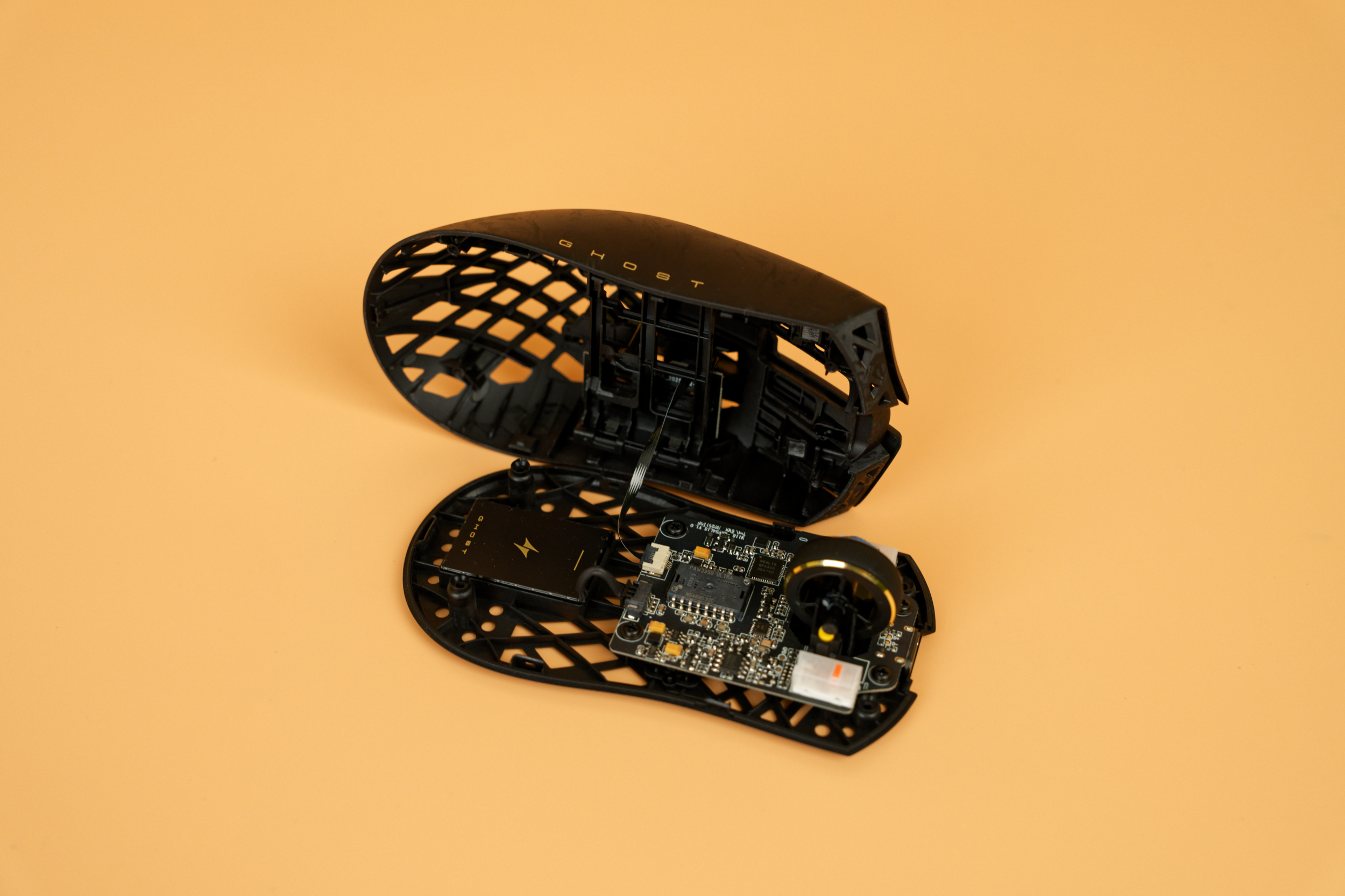 После разбора мыши внимание привлечет оптический сенсор PixArt PAW3950 Ultra: разрешение до 42 000 DPI, скорость отслеживания 750 IPS и ускорение 50G. За управление всем этим великолепием отвечает микроконтроллер Nordic 54L15, воплощение скорости и отзывчивости, гарантирующий минимальные задержки. Основные клавиши оснащены механическими свитчами ATK Lightblade, каждое нажатие которых будет отточено и четко. За колесико отвечает энкодер TTC Gold, отличающийся исключительной точностью и долговечностью.