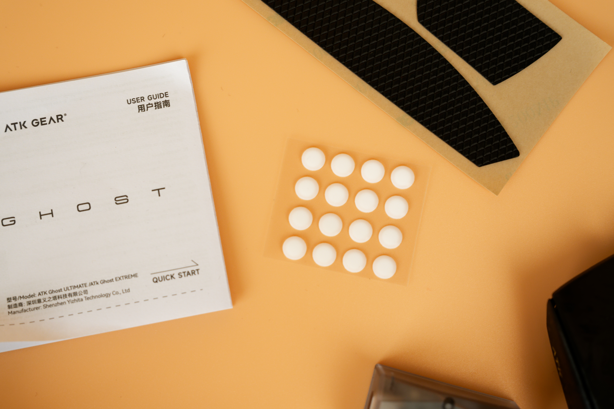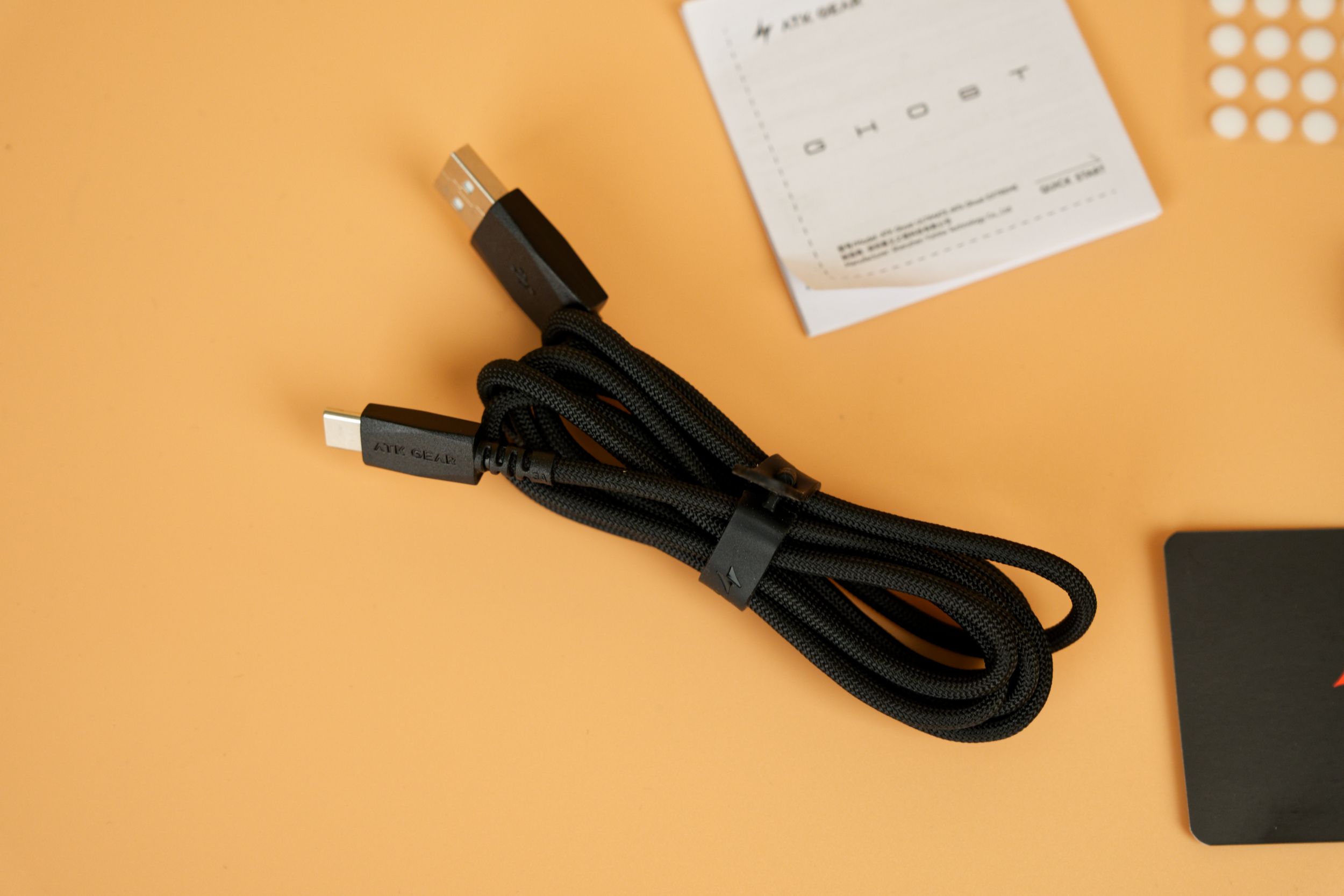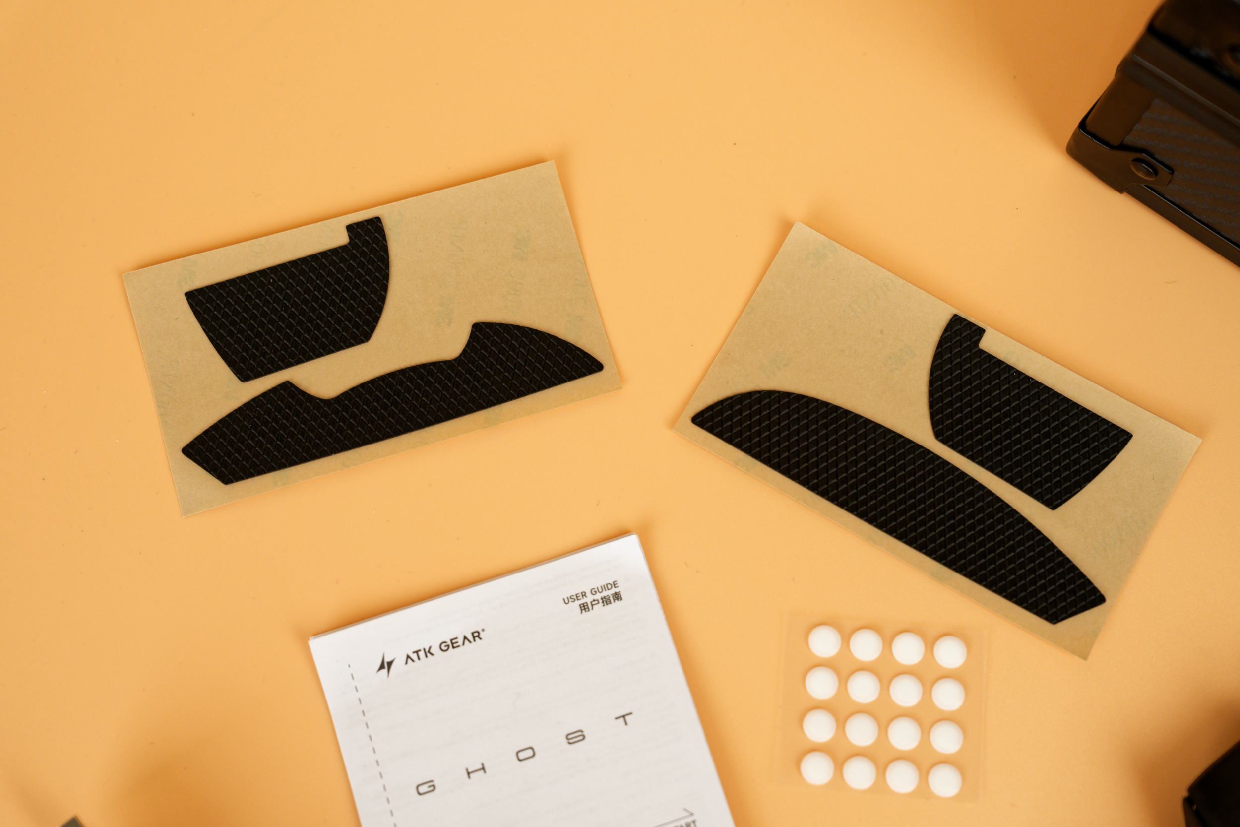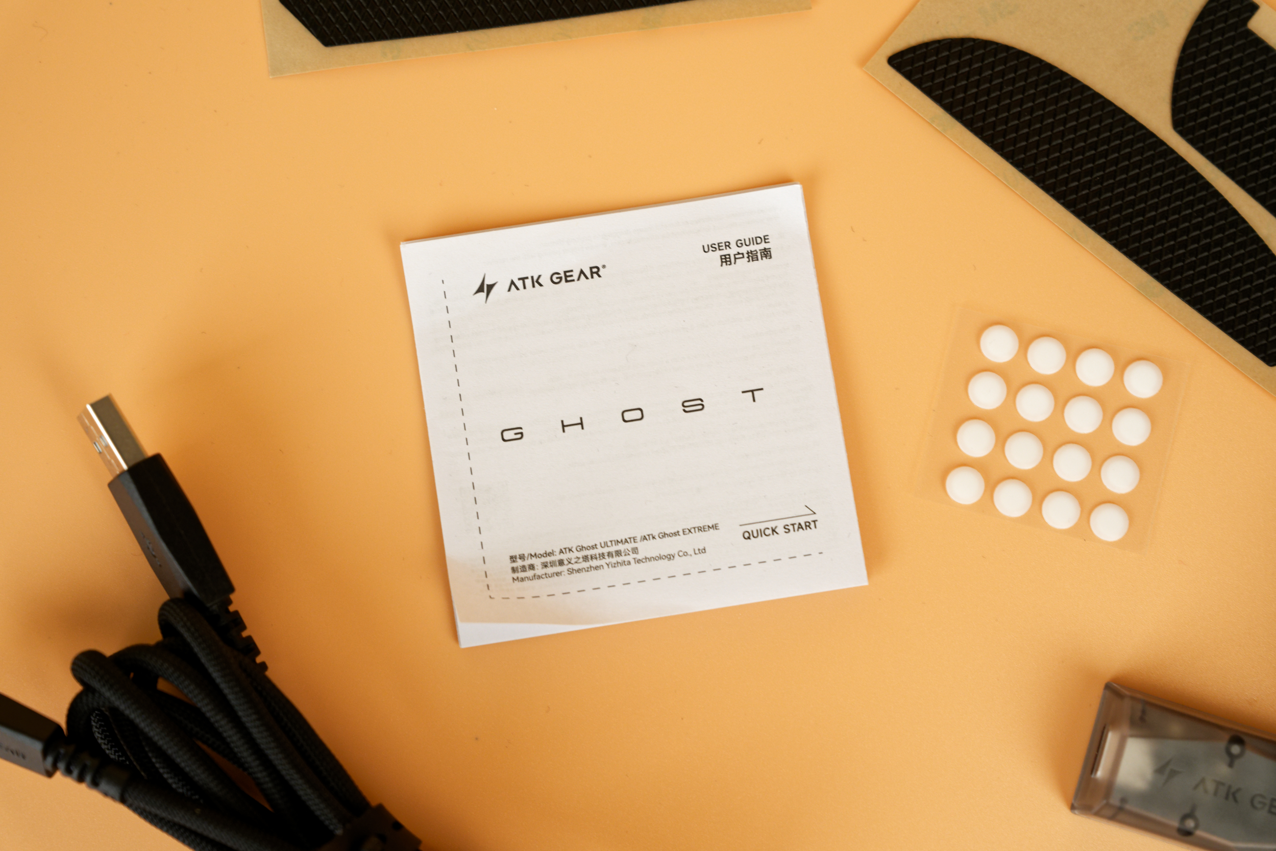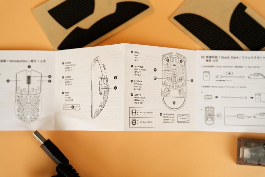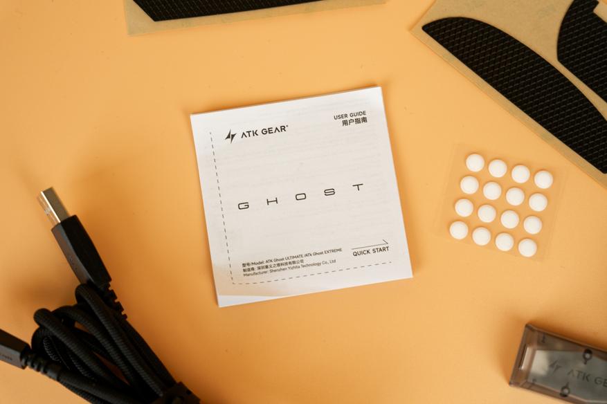 В набор аксессуаров входит гибкий паракордовый кабель для зарядки и проводного подключения, дополнительные ножки в виде точек для замены стандартных или настройки скольжения, а также грипсы — накладки на корпус, которые улучшают хват и предотвращают соскальзывание руки.