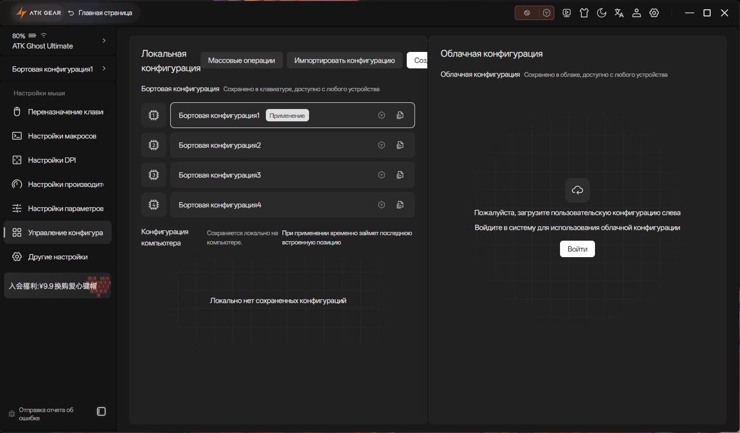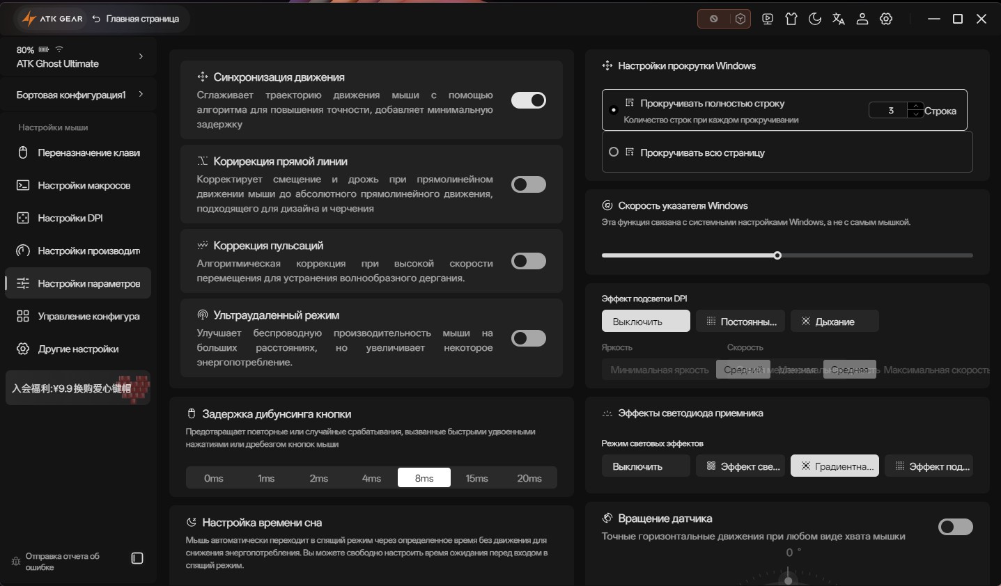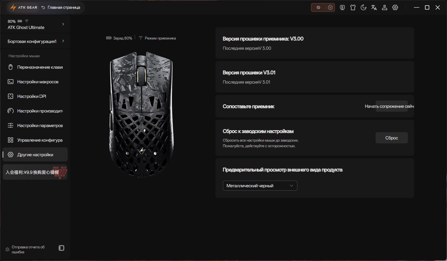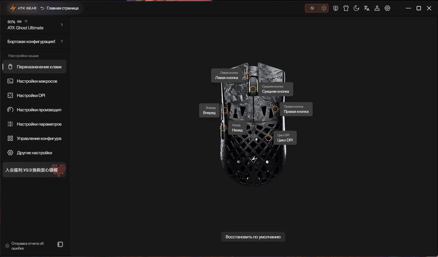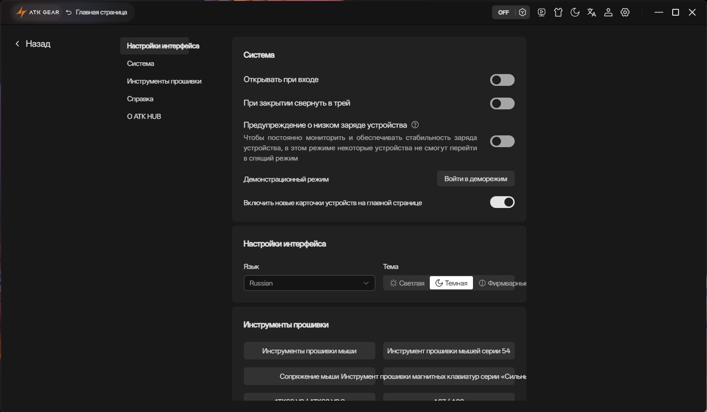 ATK Hub (также известный как ATK V HUB) — это официальное программное обеспечение, разработанное компанией ATK Gear для централизованного управления и тонкой настройки игровых устройств брендов ATK и VXE. Важной особенностью ATK Hub является его доступность в двух форматах: полнофункциональном клиенте для Windows и MacOS, а также в веб-версии, доступной через браузер, что позволяет настраивать устройства без установки дополнительного ПО. Сам интерфейс программы переведен на несколько языков, включая русский, что делает его удобным для пользователей по всему мир Пользователю предоставляется полный контроль над периферией: позволяет переназначать кнопки и создавать сложные макросы, с высокой точностью регулировать ключевые параметры мыши (вплоть до 42000 DPI, частоту опроса до 8000 Гц, высоту отрыва LOD и включать функцию Motion Sync), а также создавать и управлять профилями для разных игр.