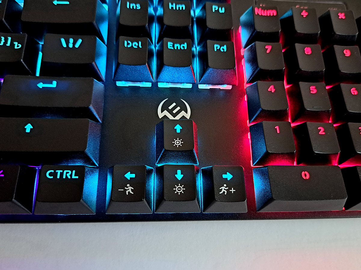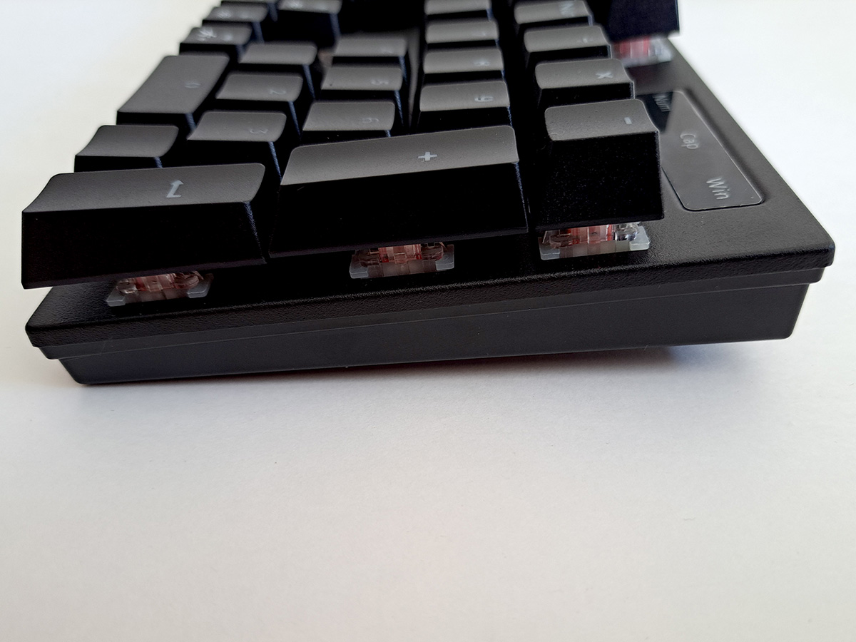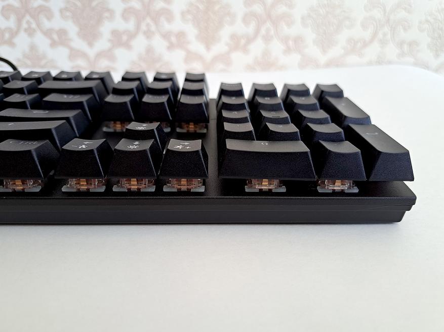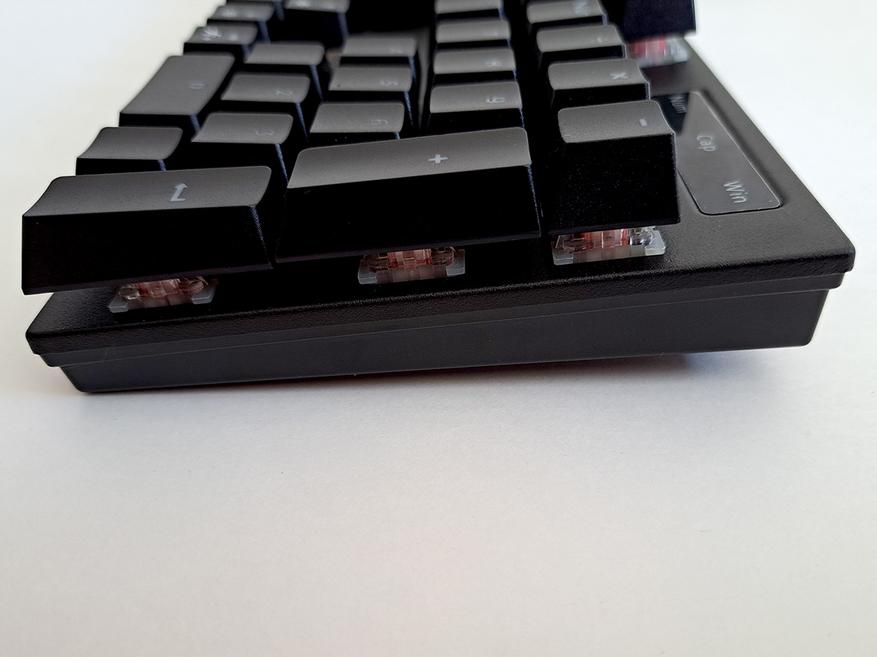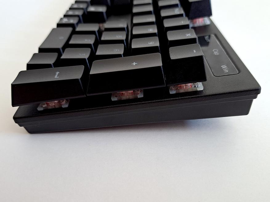 Колпачки имеют высокую посадку на переключателях, и поэтому подсветка создает световые ореолы вокруг клавиш.