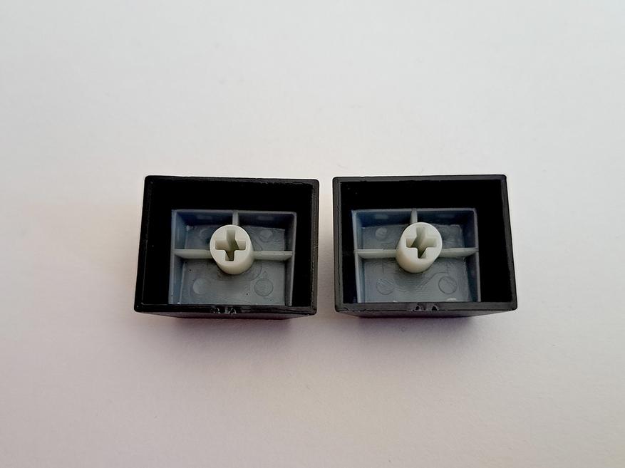 Давайте снимем колпачки с клавиш и посмотрим на переключатели.