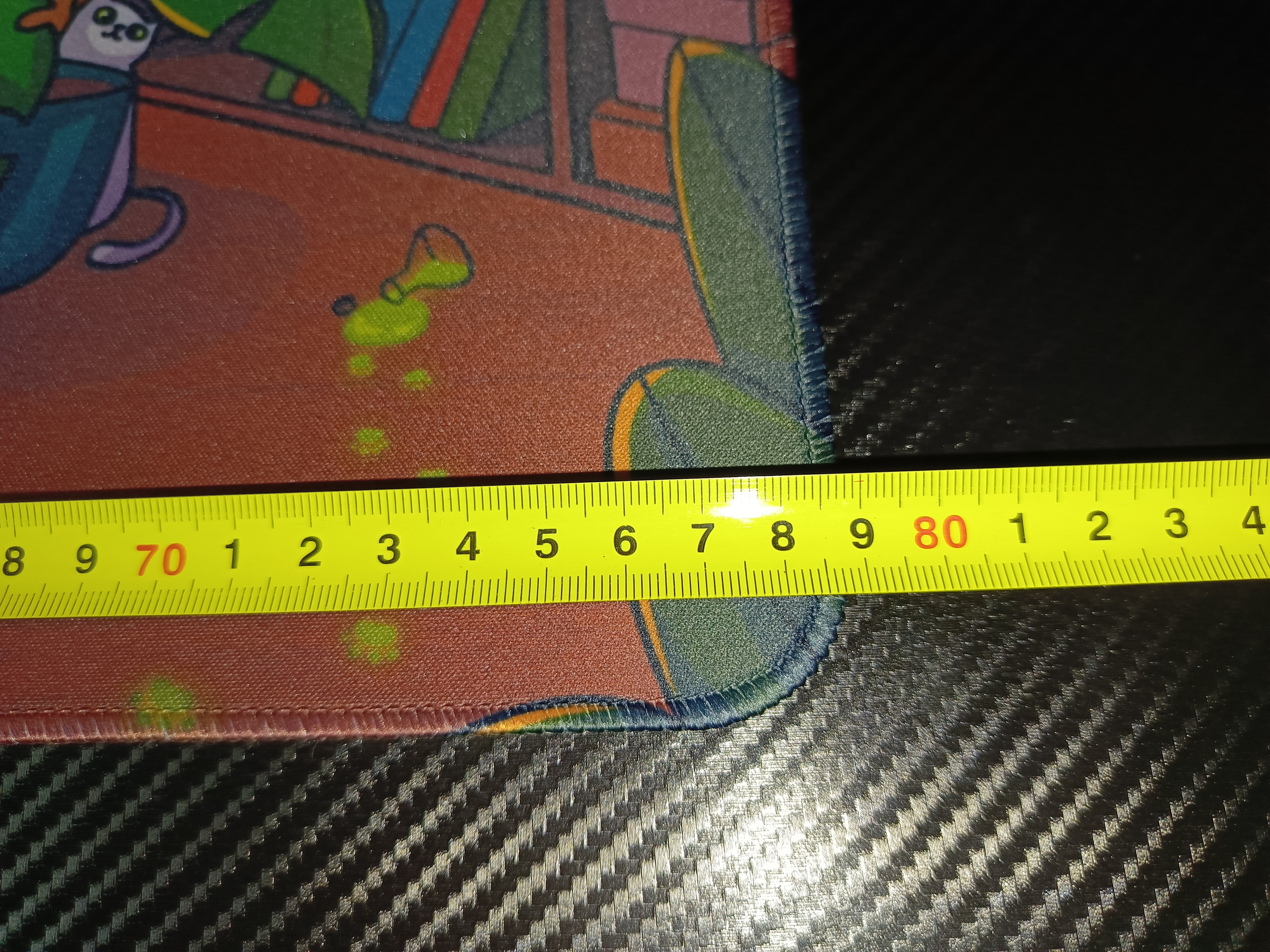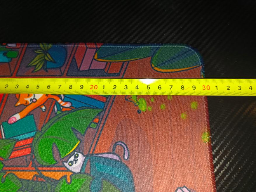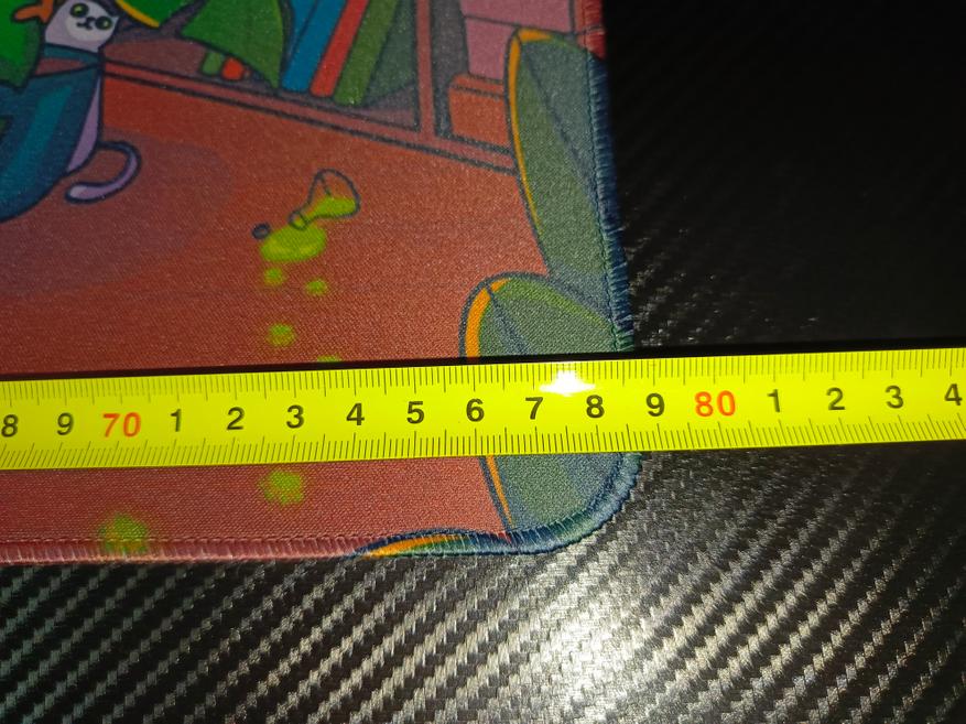 Коврик имеет заявленные габариты 800х300 мм, что идеально подошло для небольшого стола. Однако стоит отметить, что фактическая ширина оказалась на 12 мм меньше заявленной — 788 мм, что является обычной практикой среди производителей. Толщина коврика составляет 3 мм, что, на мой взгляд, является оптимальным вариантом: он не слишком тонкий, но и не громоздкий.